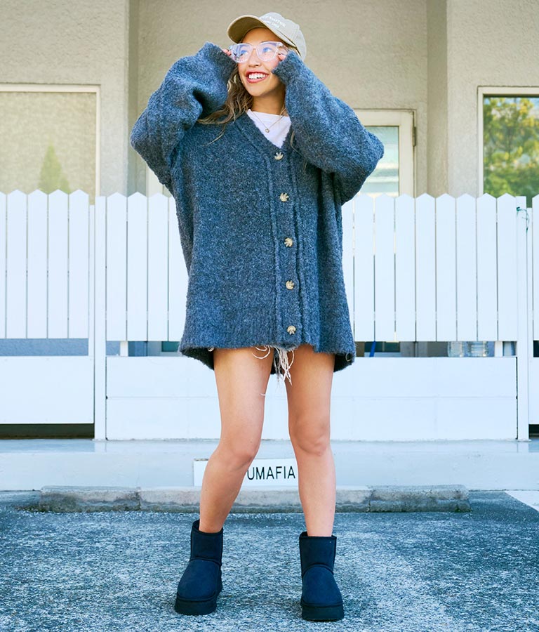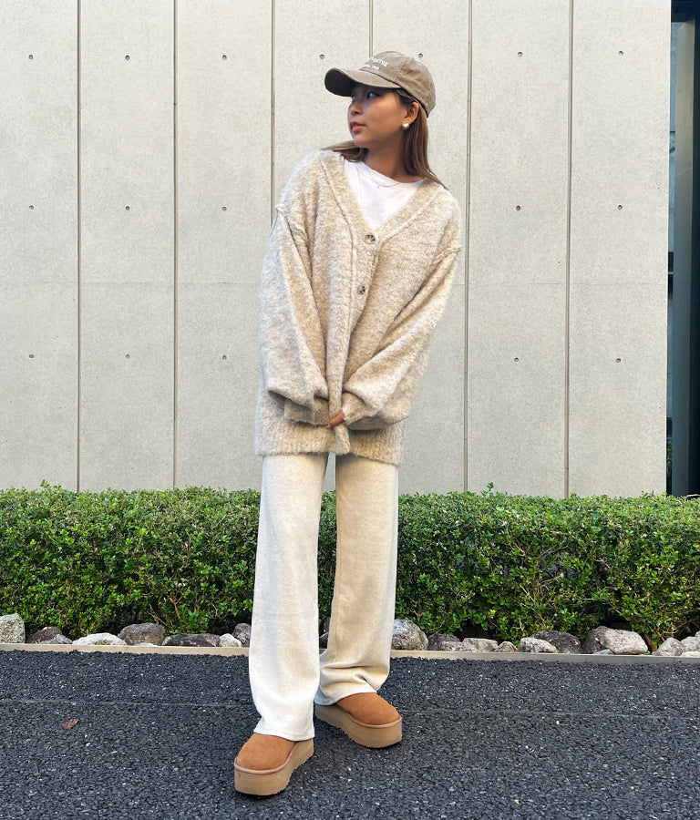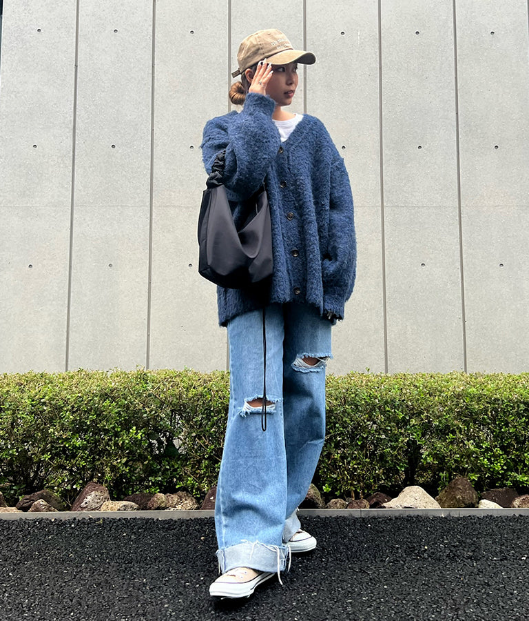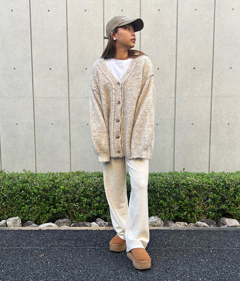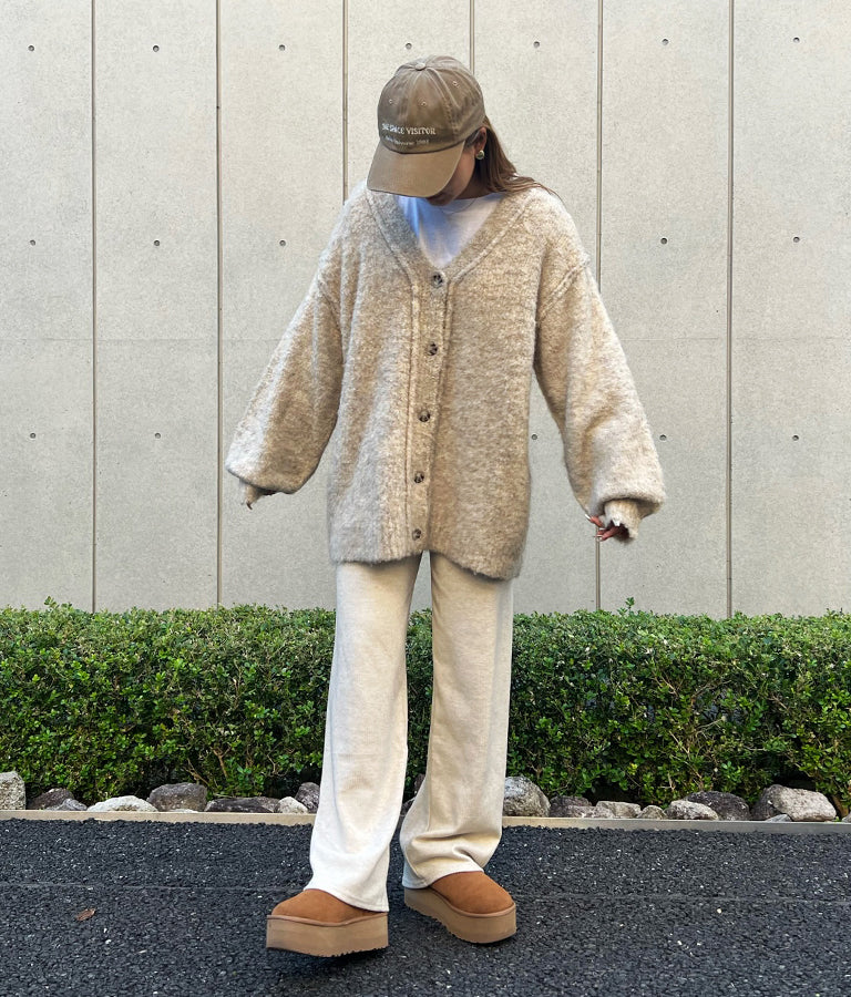 定番のVネックカーディガンなのでどんなトップスやボトムとも合わせやすいのもうれしいポイント。