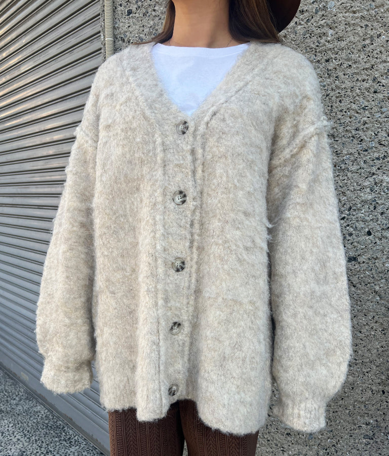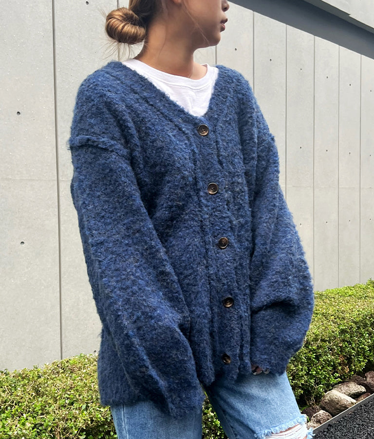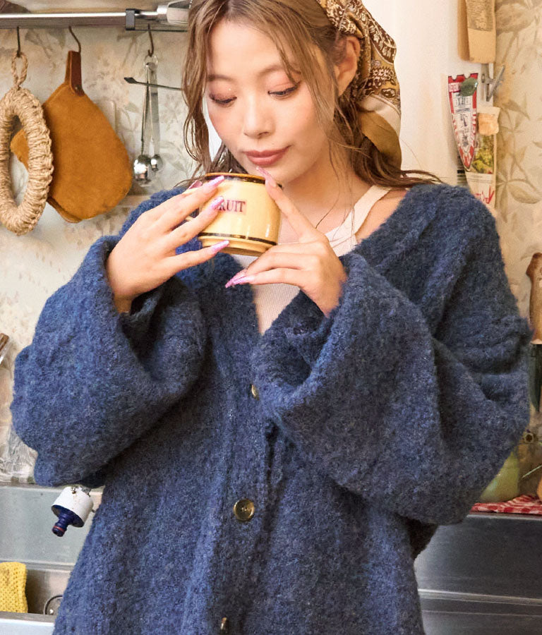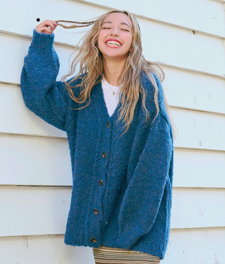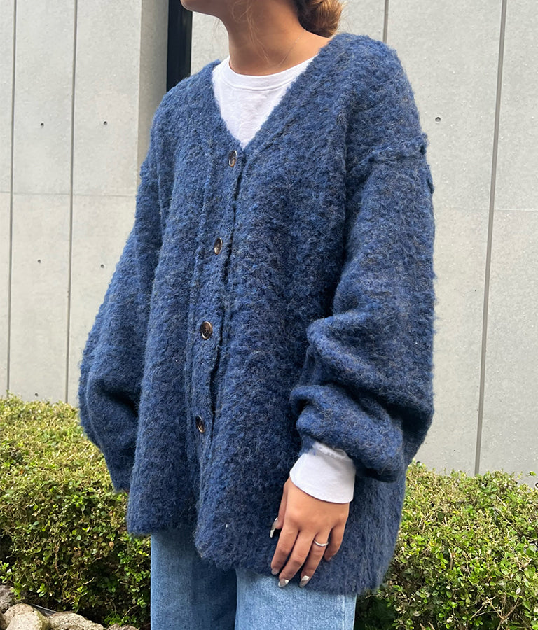 ブークレ ループヤーン 起毛 MIX ニット カーディガン -