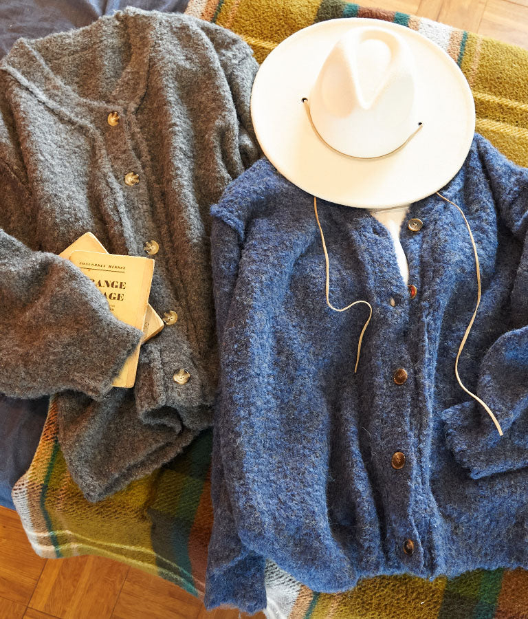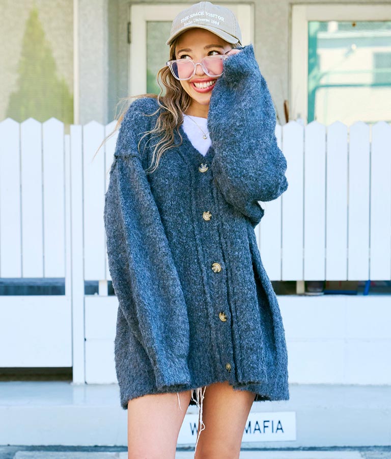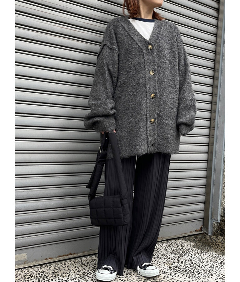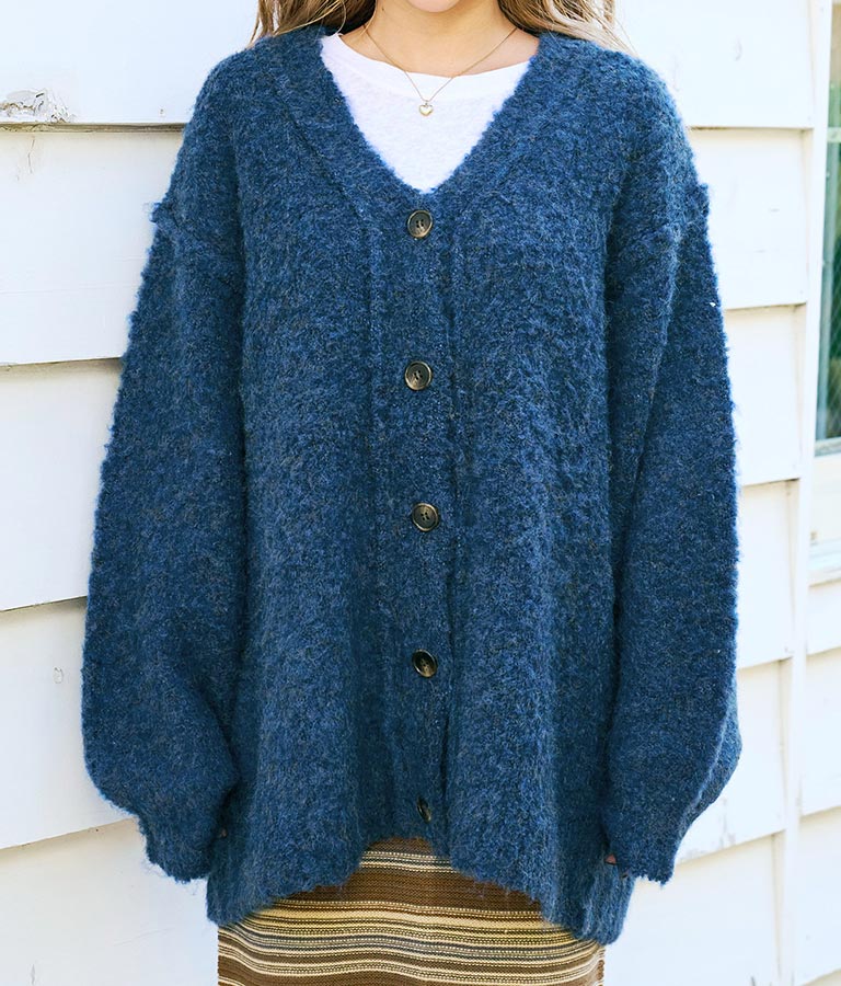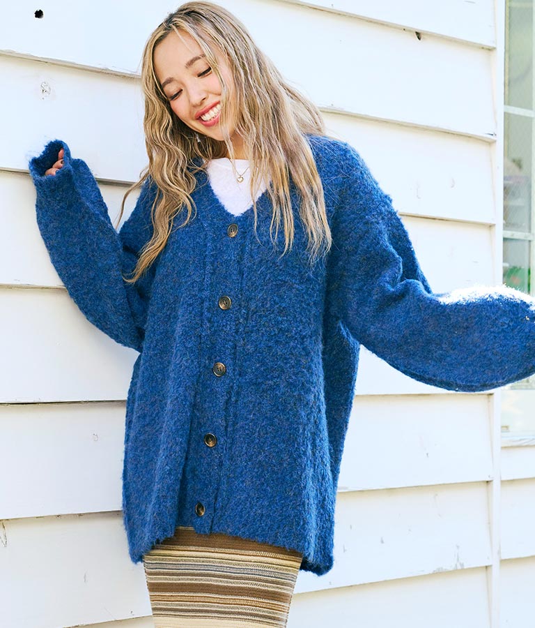 ブークレ ループヤーン 起毛 MIX ニット カーディガン -