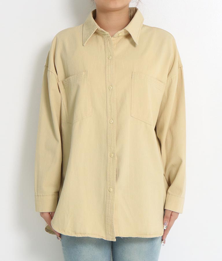 オーバーサイズ ラウンドヘム シンプル 長袖 シャツ -