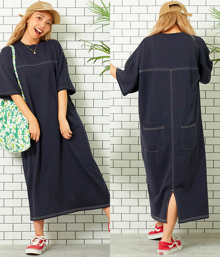 ガーゼ 裏毛 バック切替 5分袖 スウェット ワンピース 857-5839
