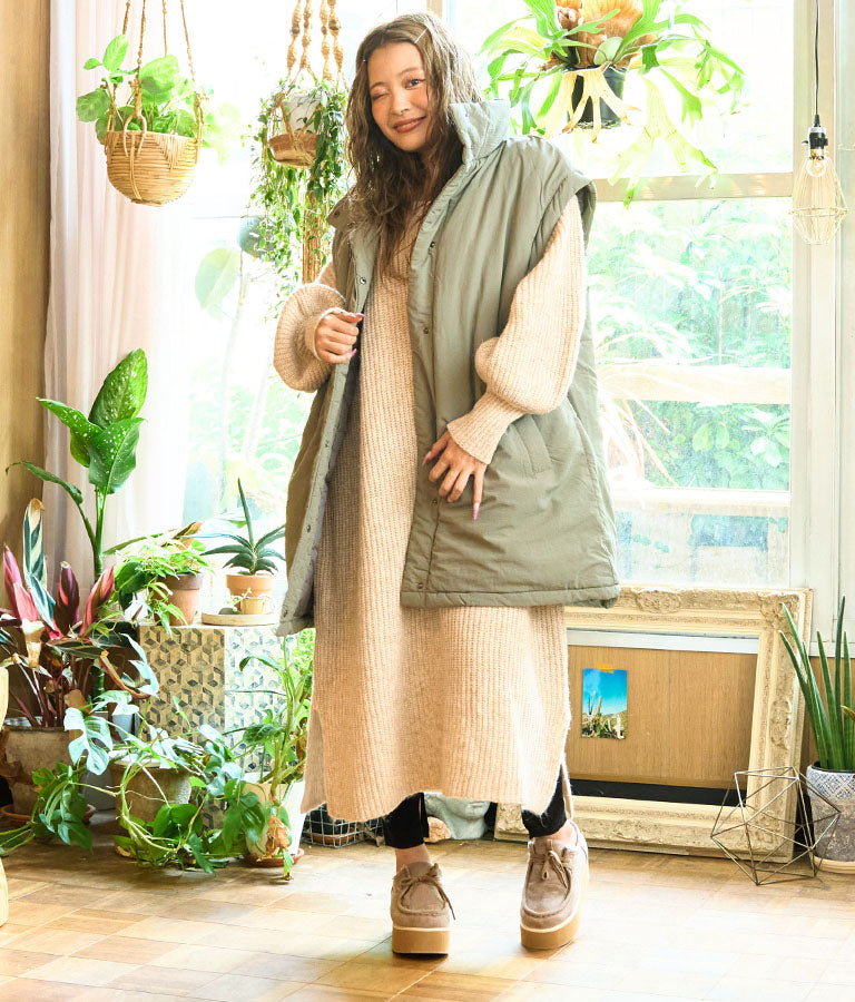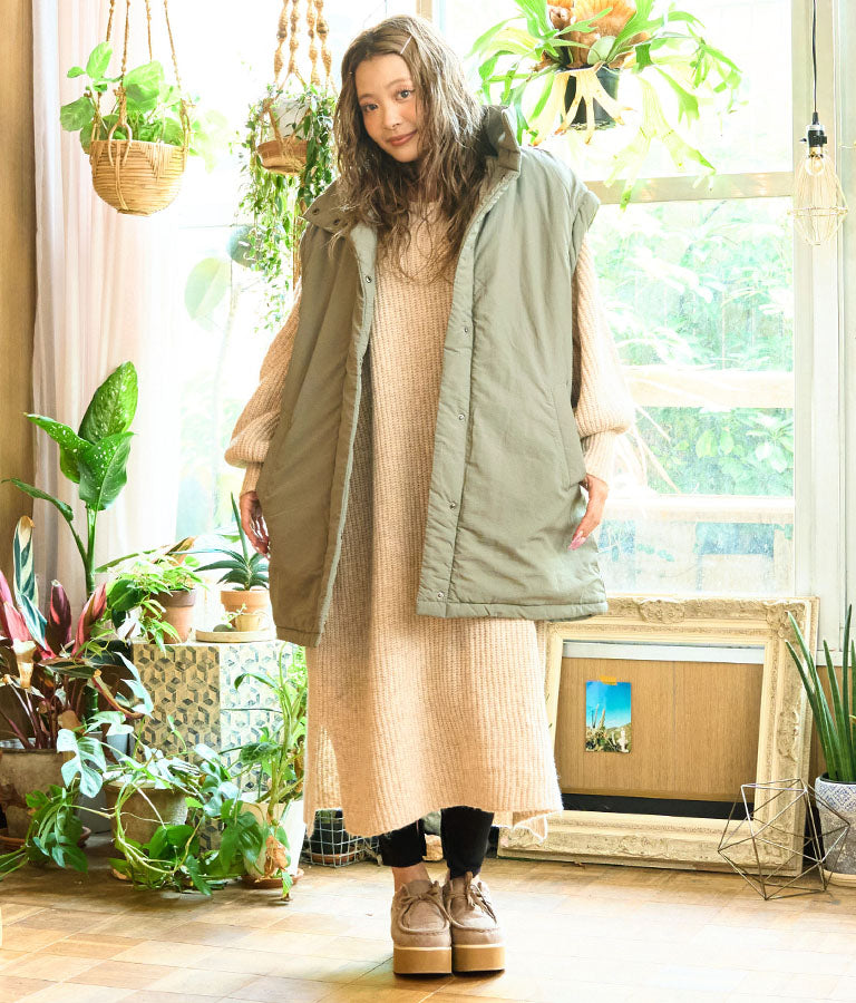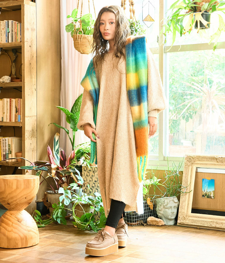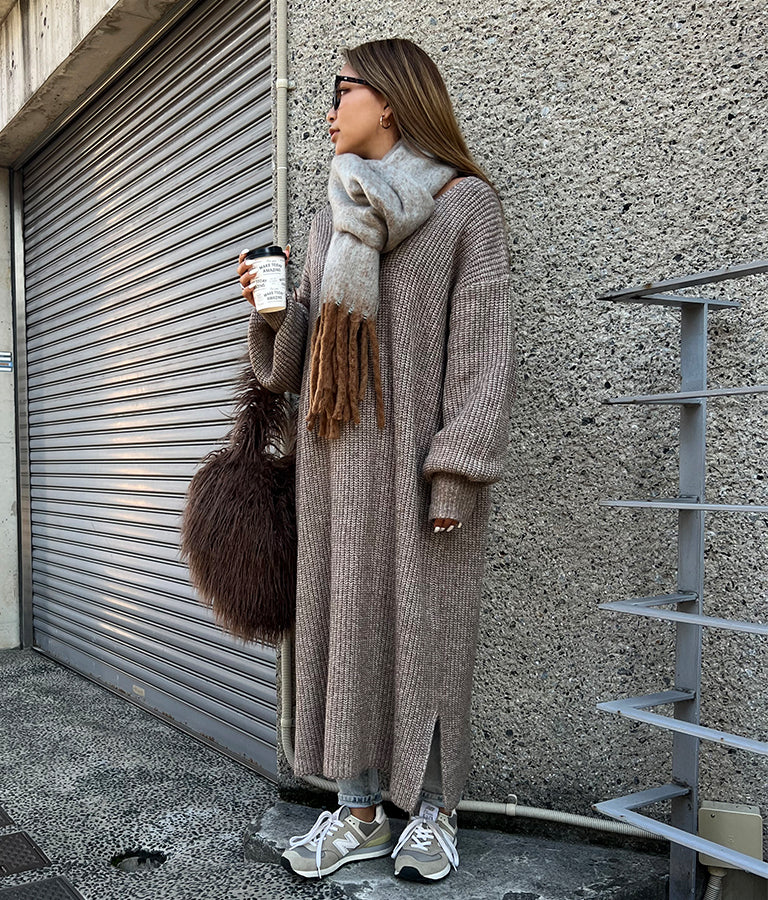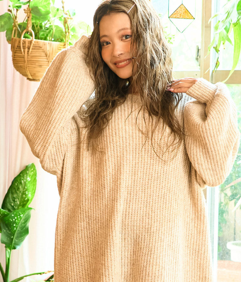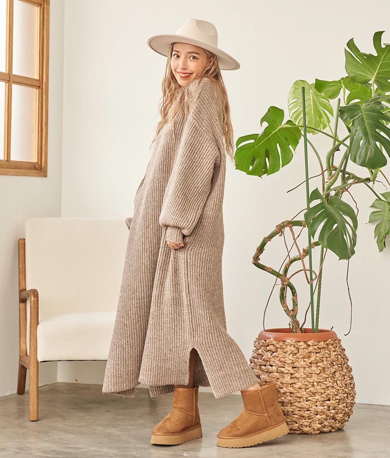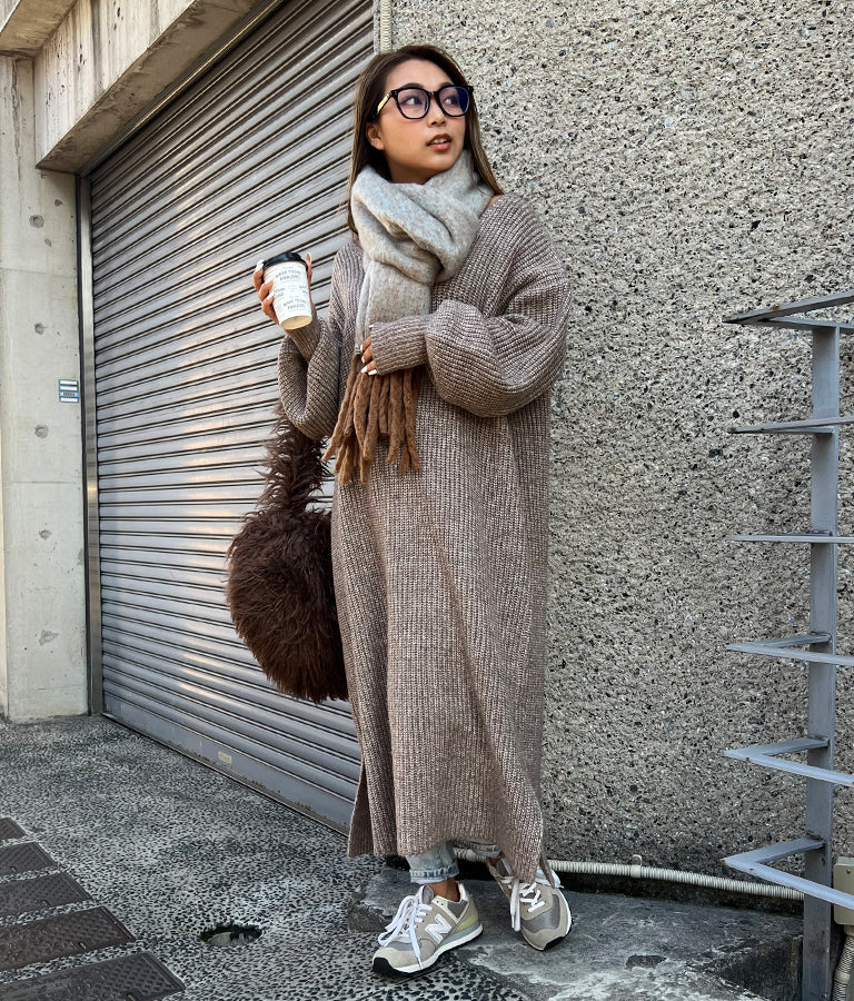 ウール混のふわっとした素材感とニットの編み目の風合いが柔らかい雰囲気を演出します。