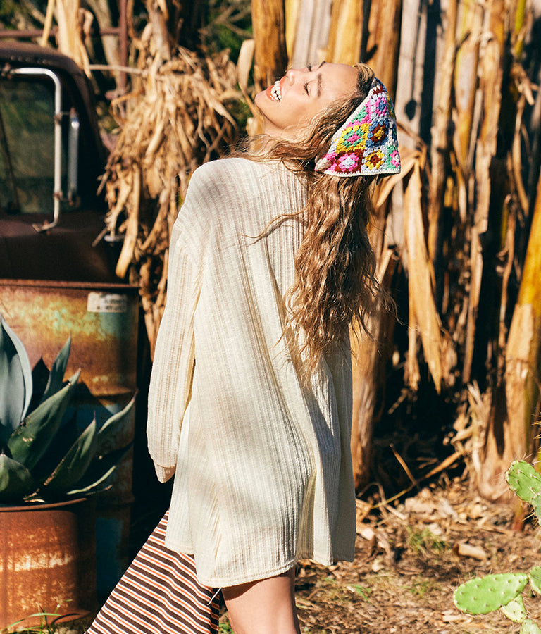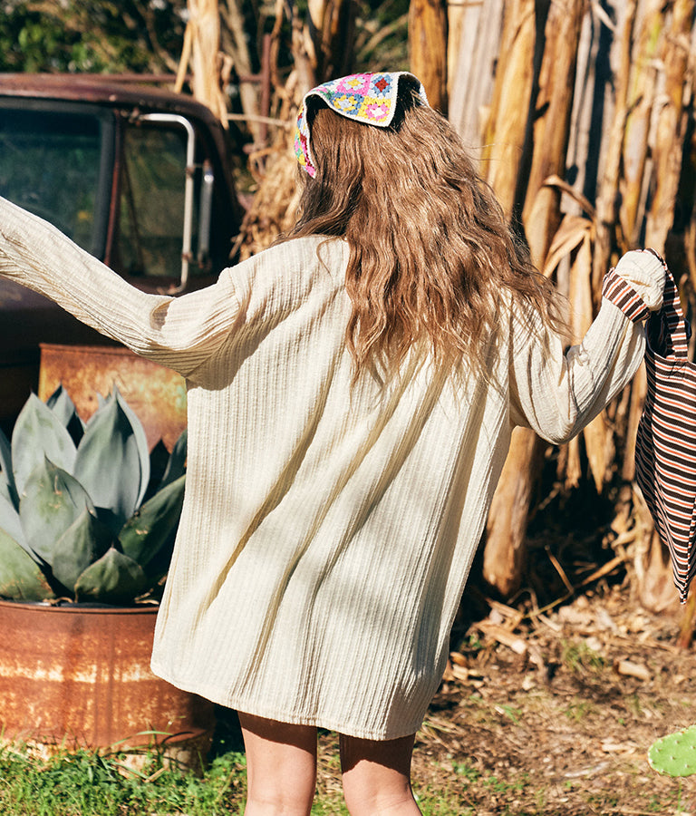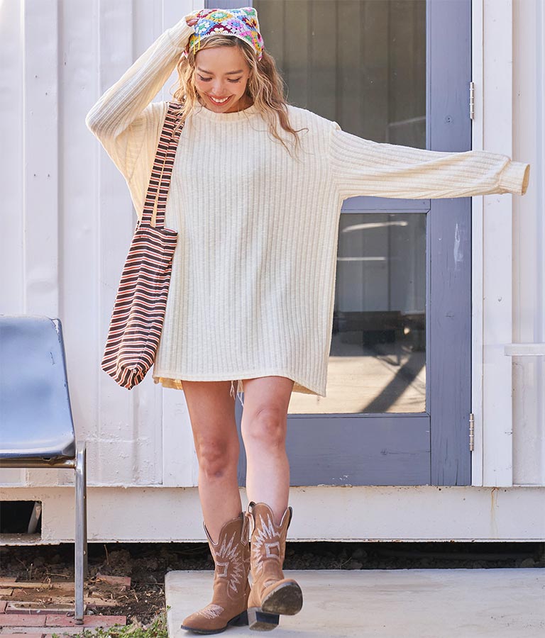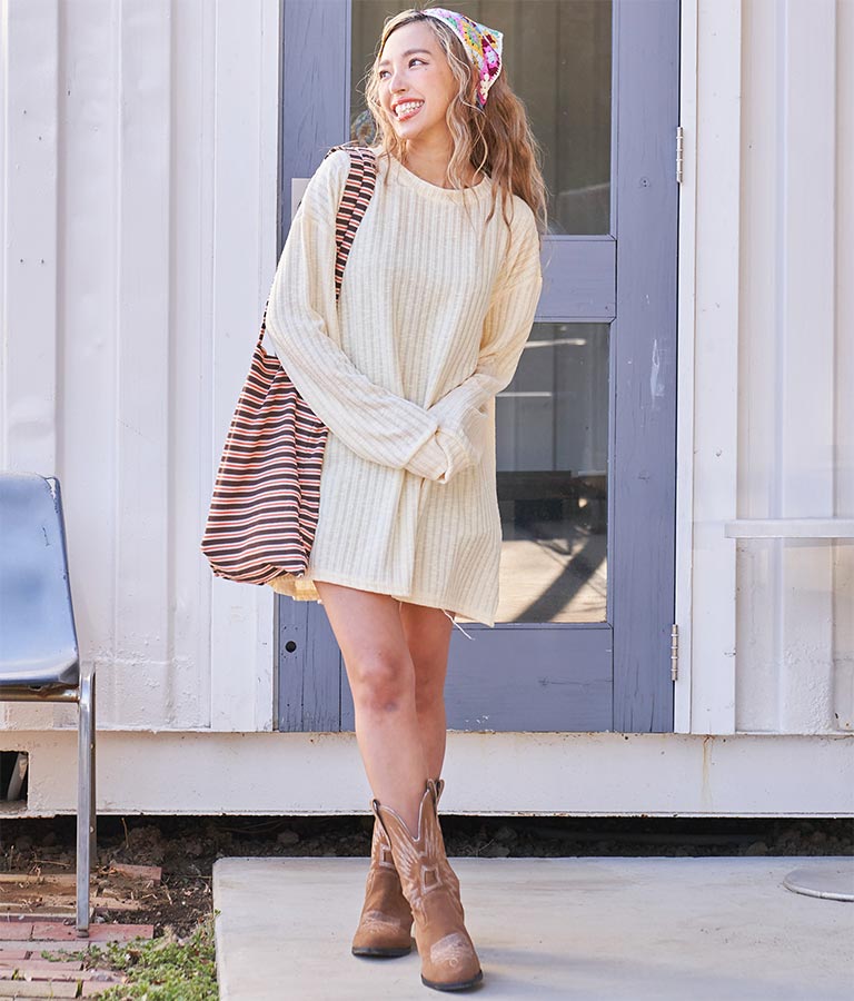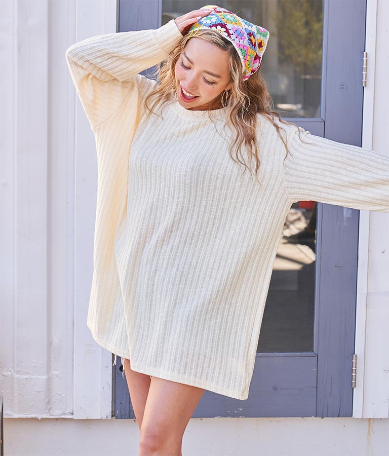 スラブ ランダム リブ 長袖 ミニ ワンピース