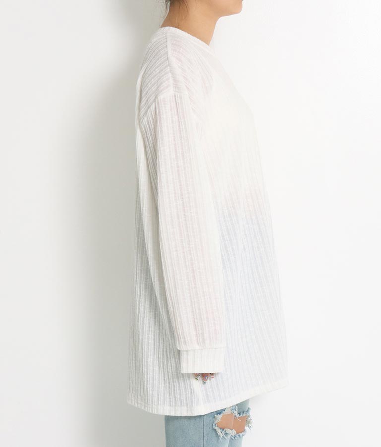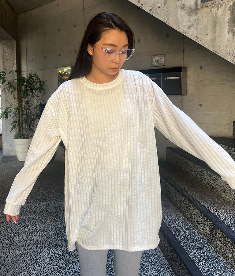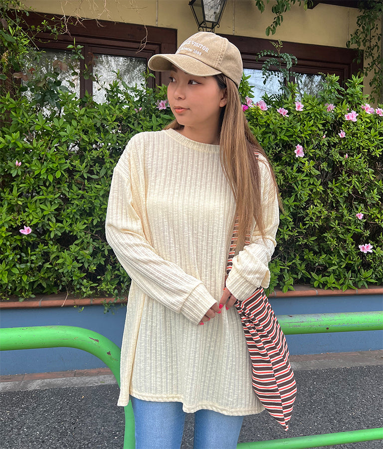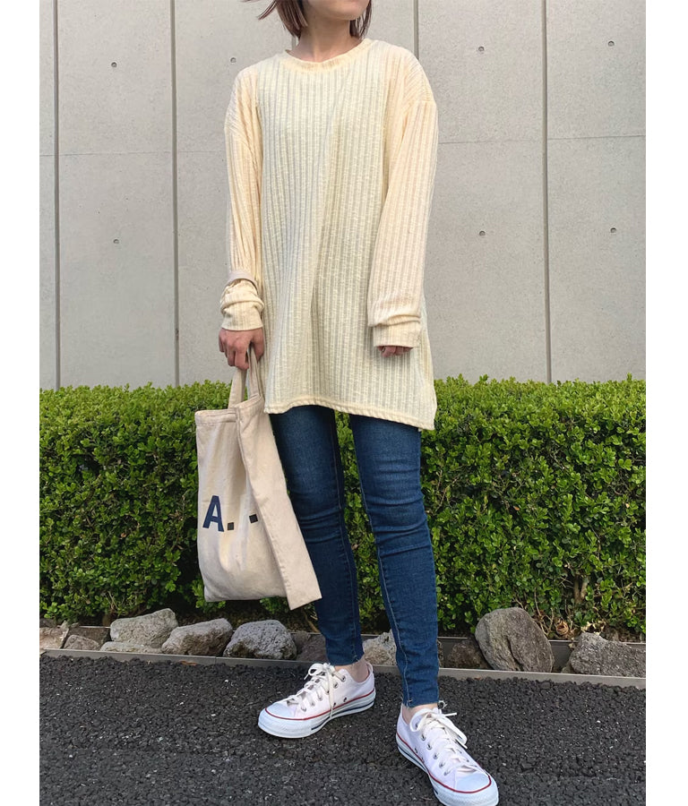 ゆったりしたラフなシルエットで華奢見えも叶う1枚です。