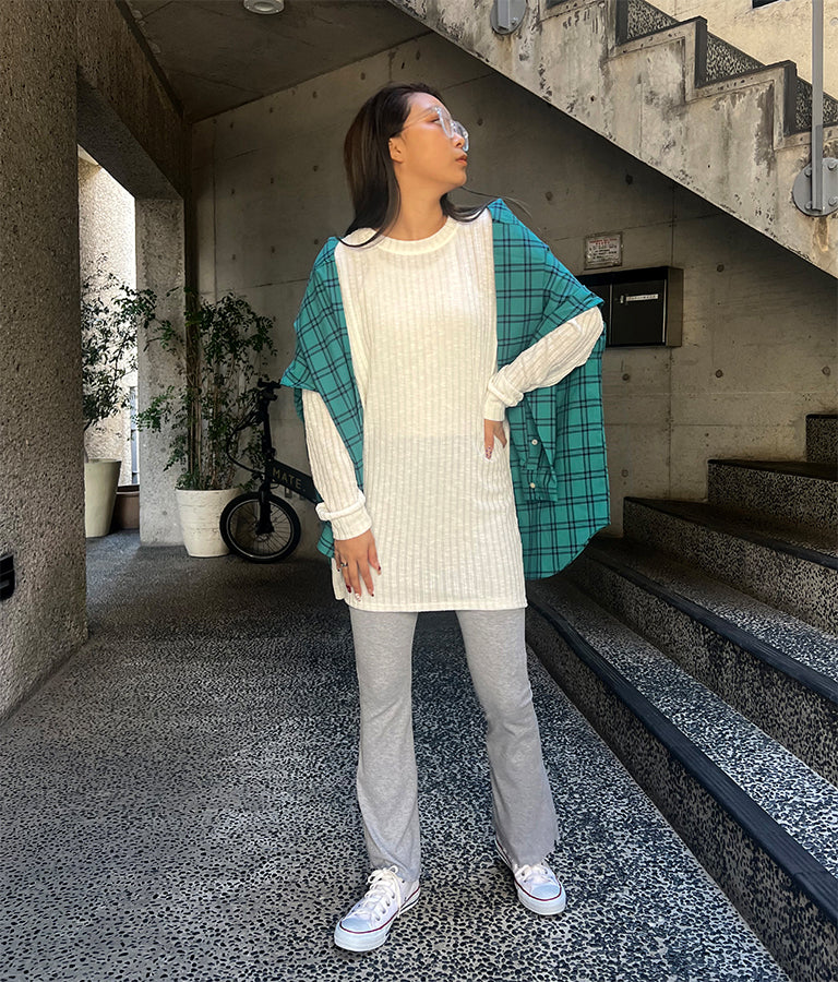 1枚でミニワンピとしてはもちろん、ボトムを合わせてチュニックとして着用するのもおすすめ◎