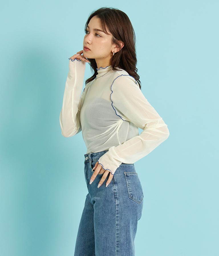 配色メロー シアー トップス カットソー 793-8763
