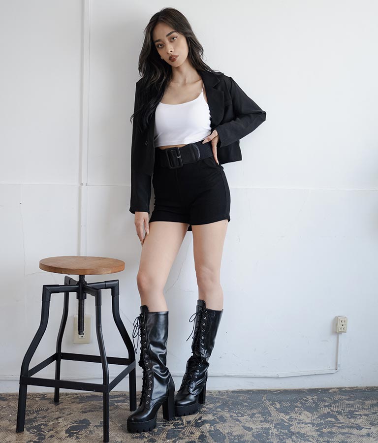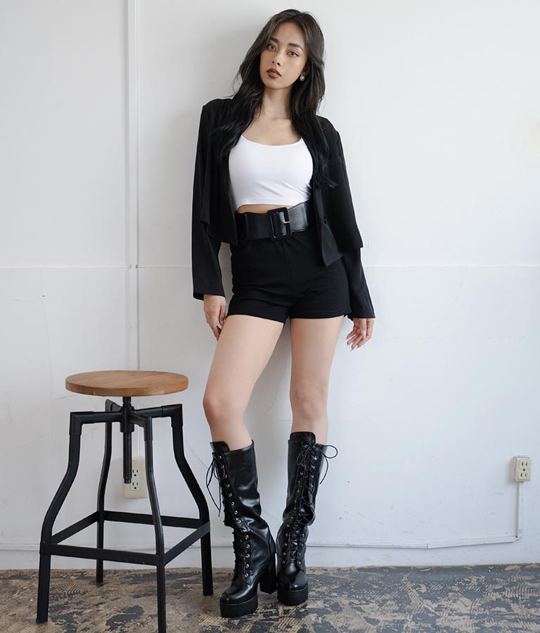 ウエストマークに適した太幅デザインで、腰をしっかりとホールドするゴム素材を使用しました。