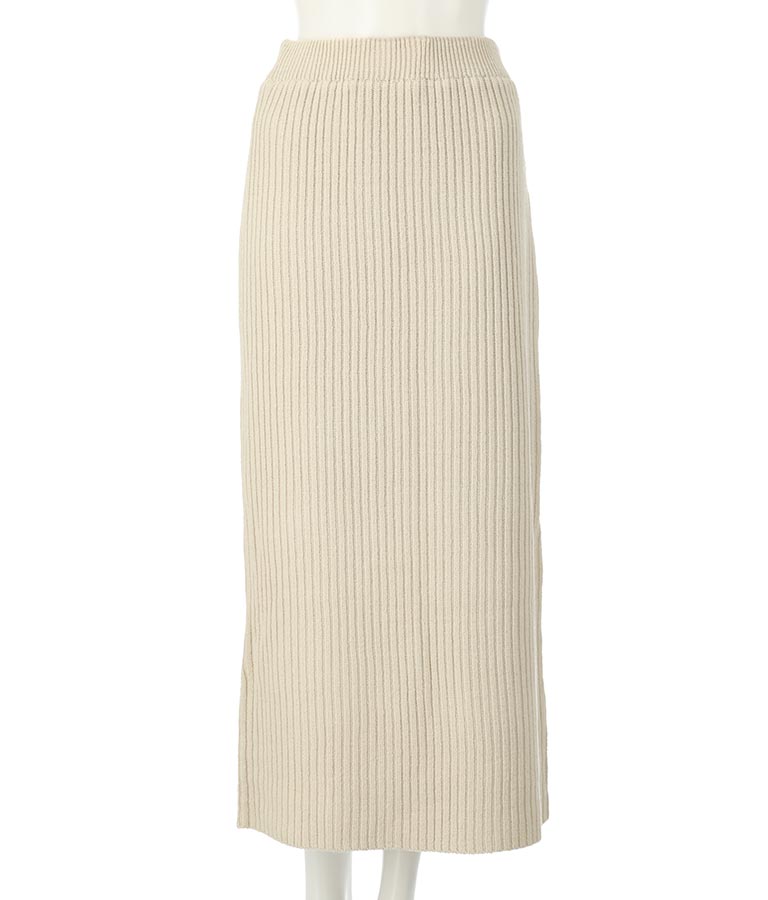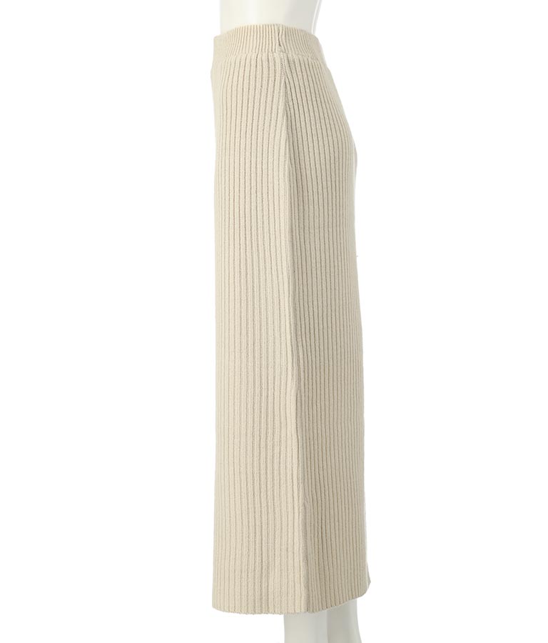 程よい厚みと温かさのあるリブが心地よく、シルエットが美しいIラインのニットスカート。
