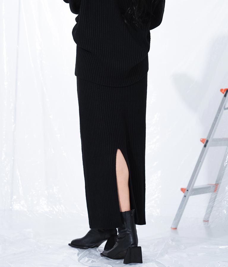 バックスリット リブ ニット ロング タイト スカート -