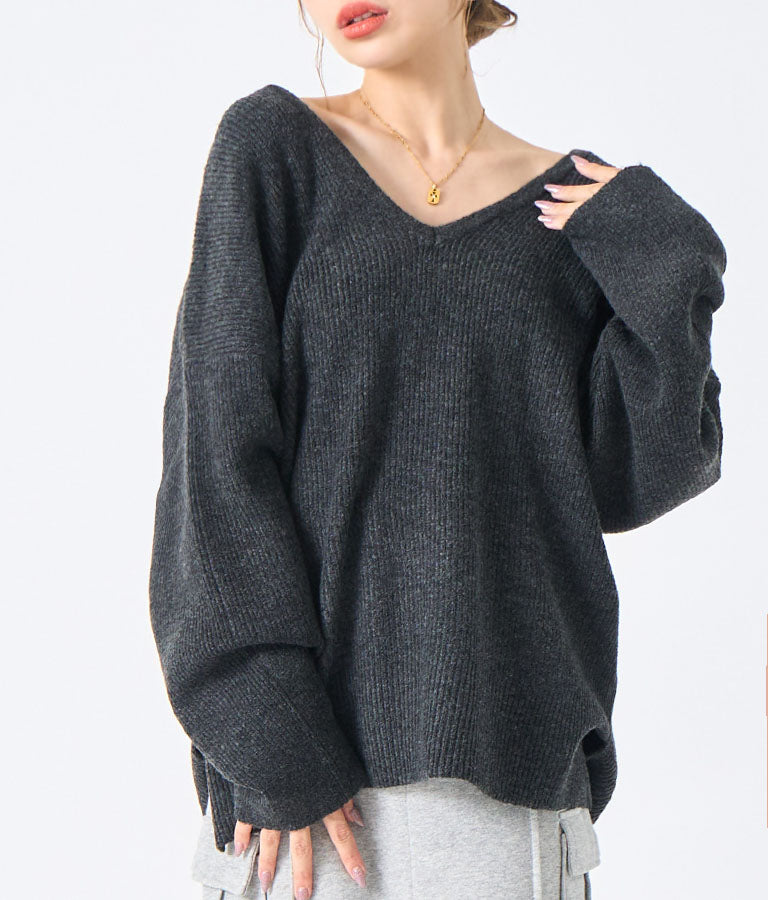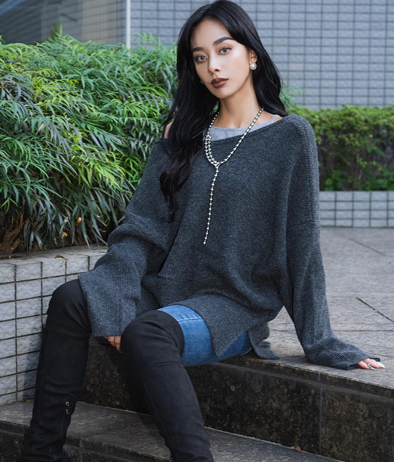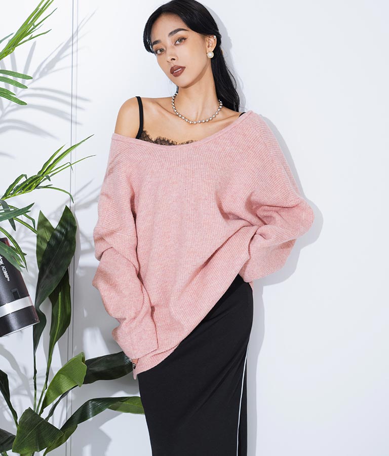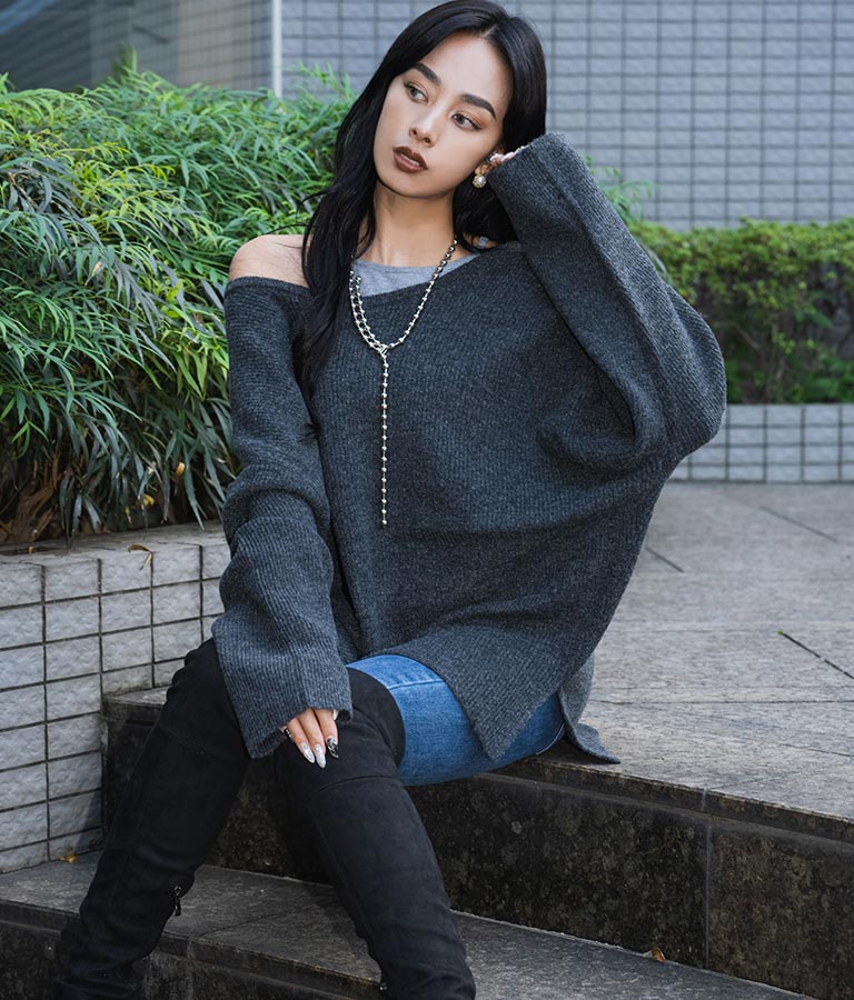 ビッグシルエット ルーズ ニット セーター 2WAYネック 長袖 493-2608