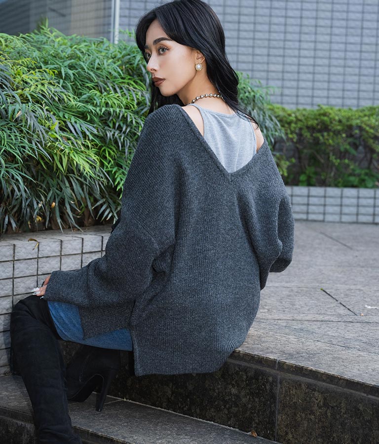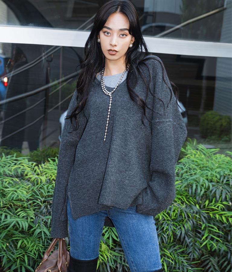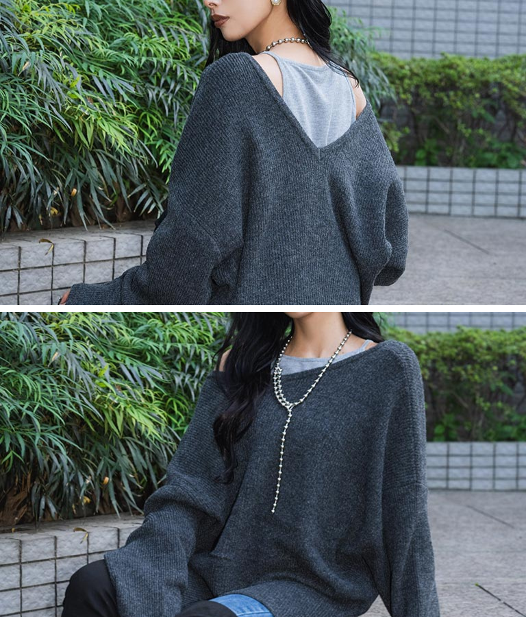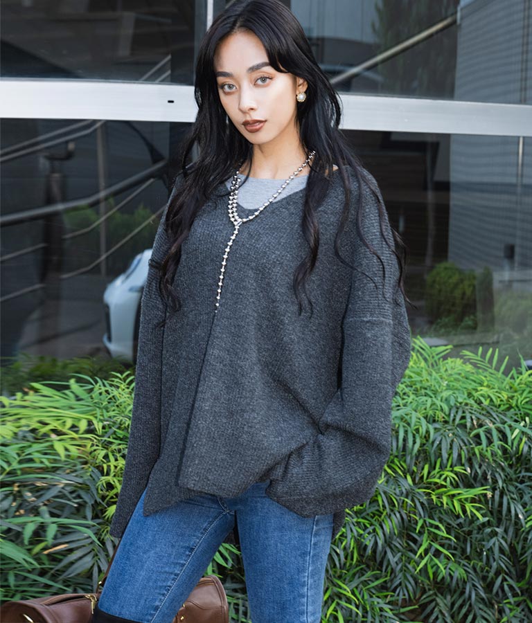 VネックUネック前後2WAYで着用可能なため、合わせるインナーやその日の気分で使い分けでき、着回し力もバッチリの1枚です。