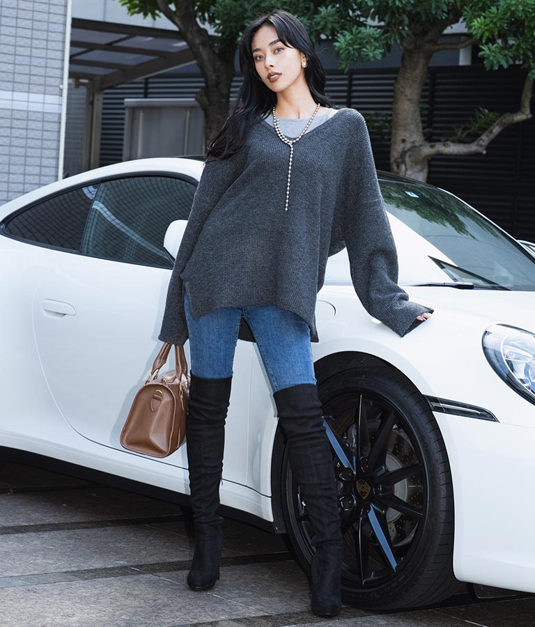 コンパクトなタイトスカートやスキニーとの相性が抜群。