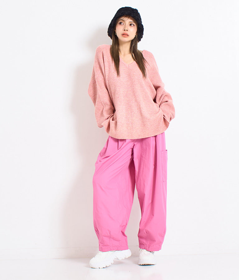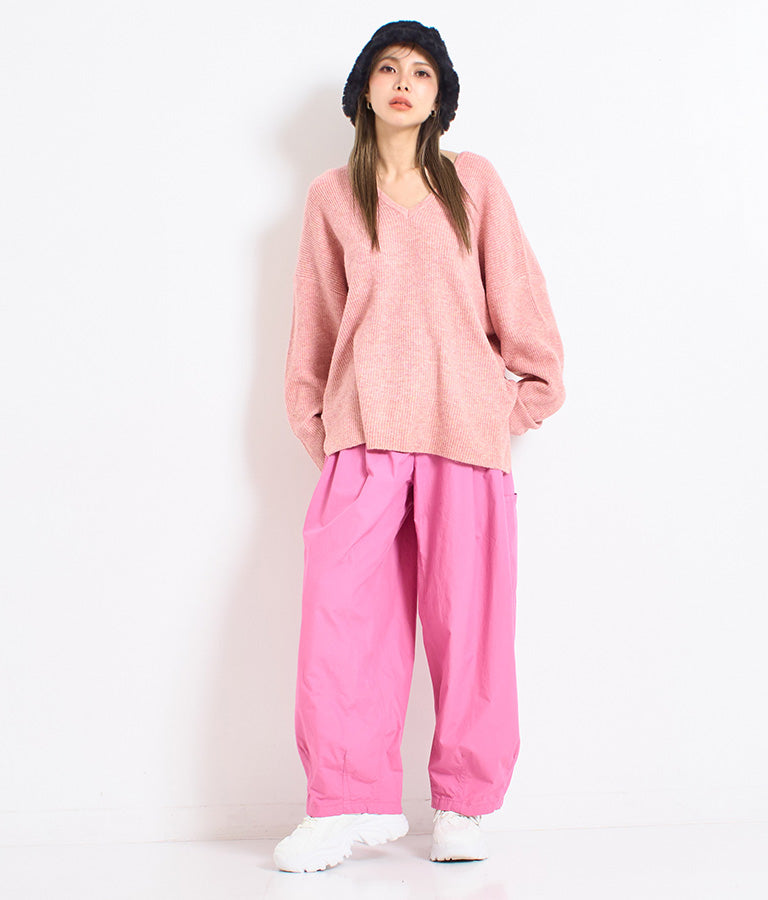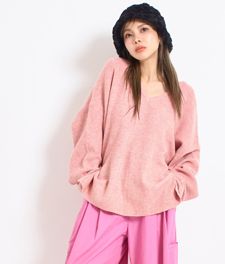 ビッグシルエット ルーズ ニット セーター 2WAYネック 長袖 -