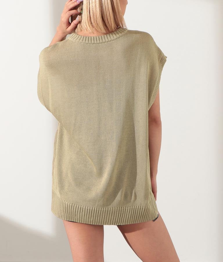 清涼感のある麻タッチの風合いで暑い日も快適なトップス。