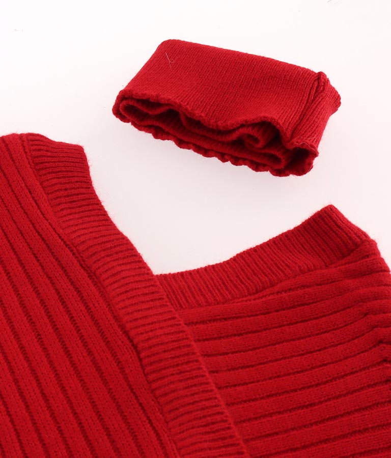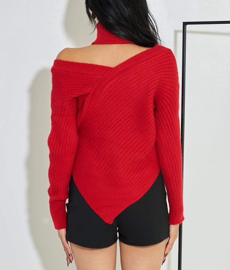 カシュクールアシンメトリー Vネック チョーカー付 セーター ニット 長袖 -