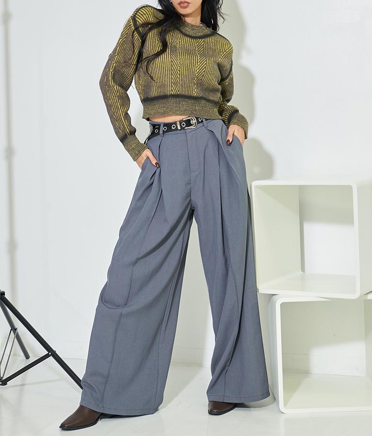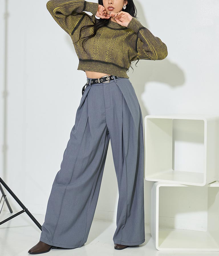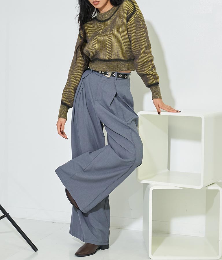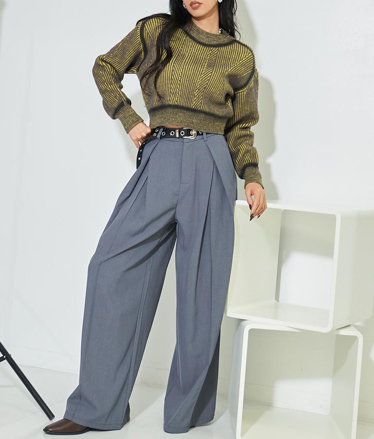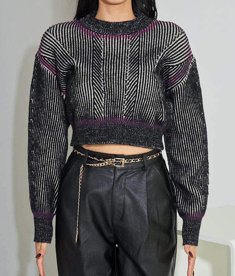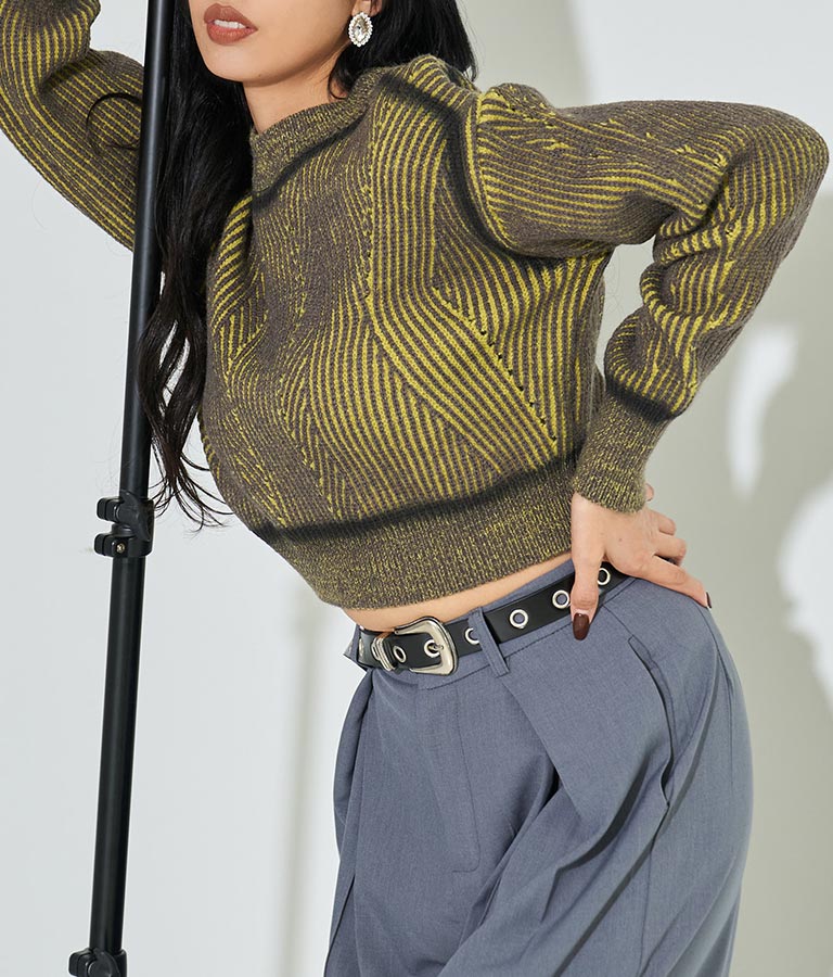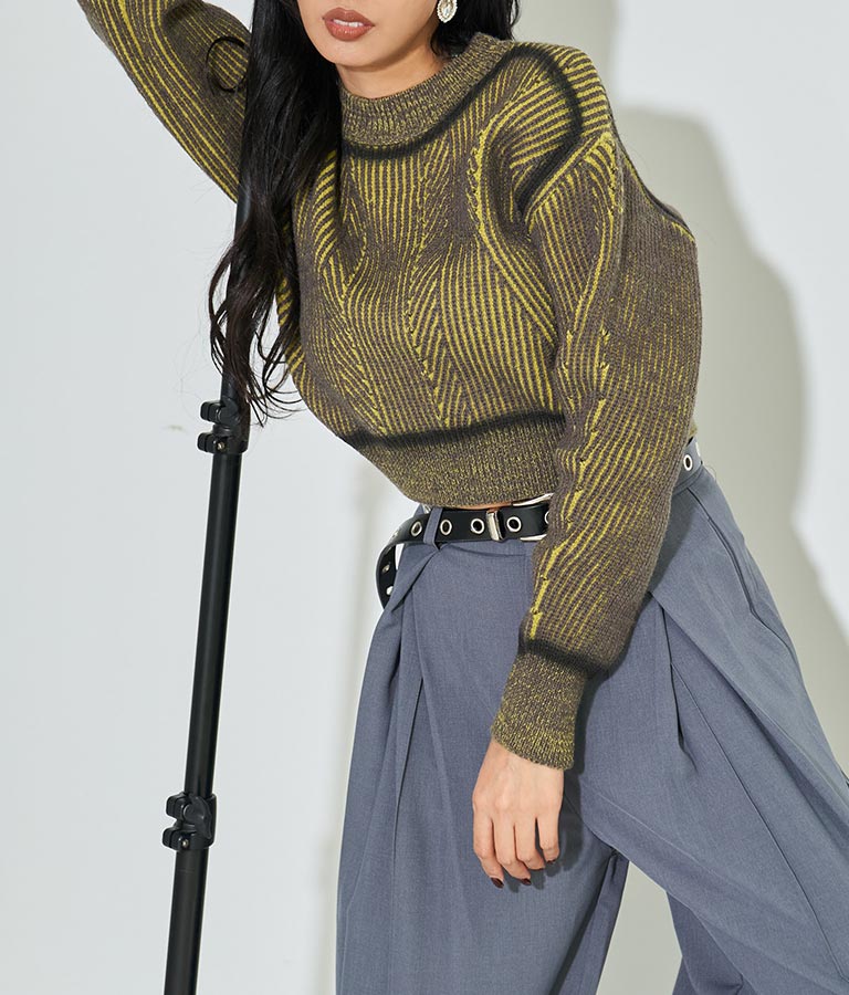幾何学柄 スプレーライン クロップド 起毛 ニット セーターハイネック 長袖 403-8525