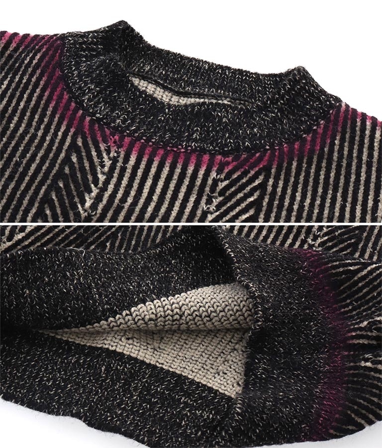 スタイリッシュな幾何学柄が目を引くニットトップス。