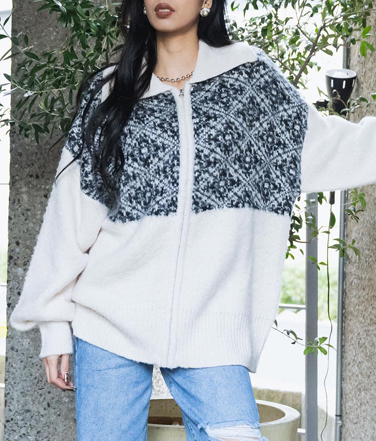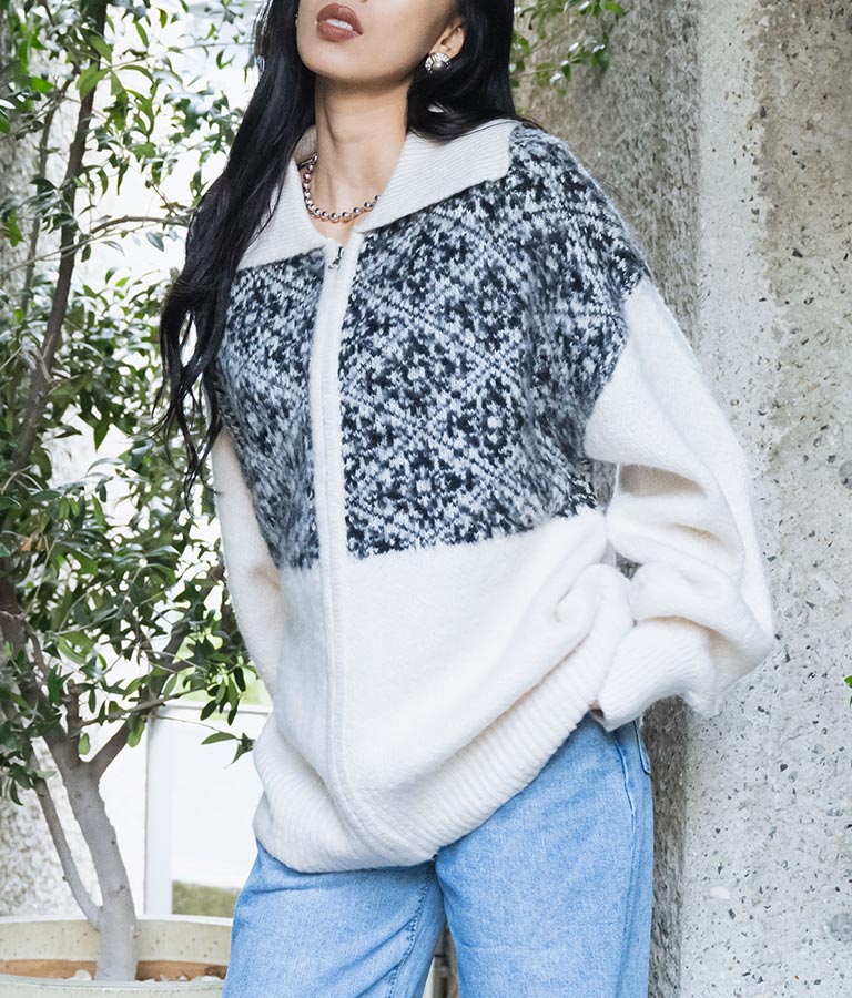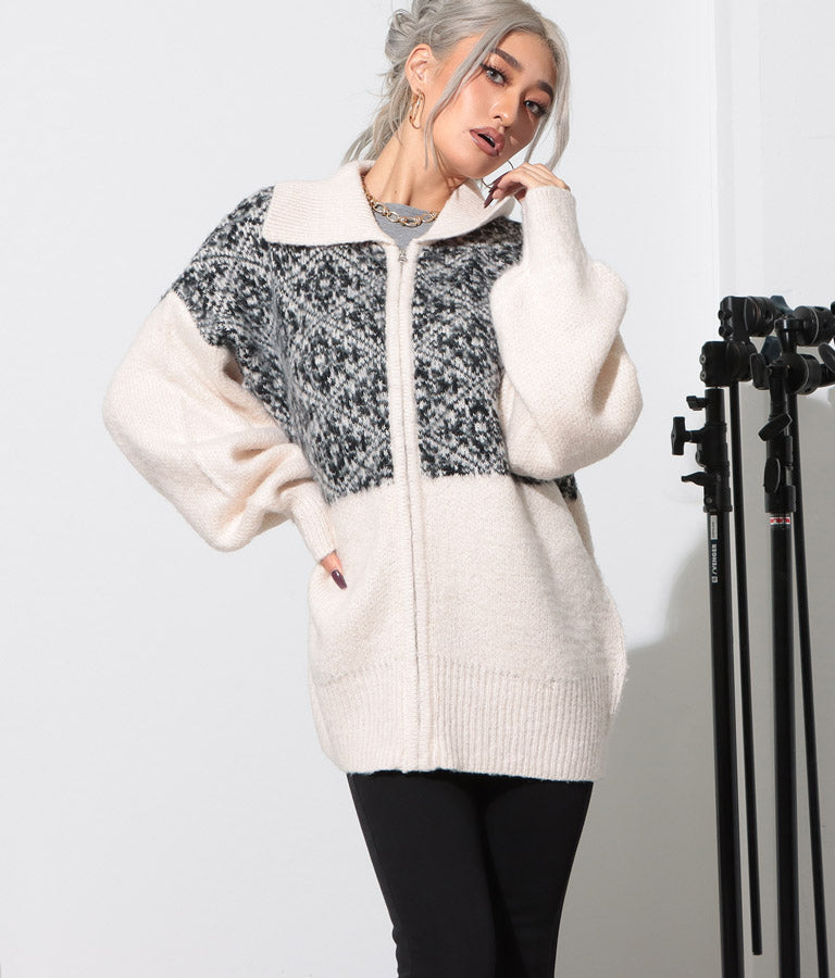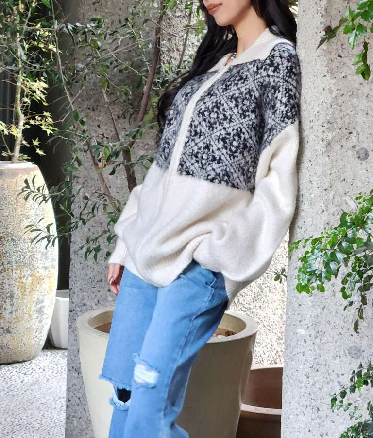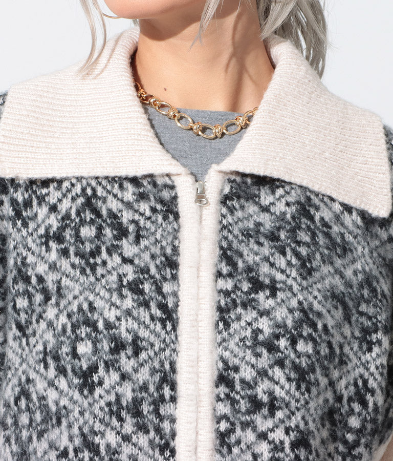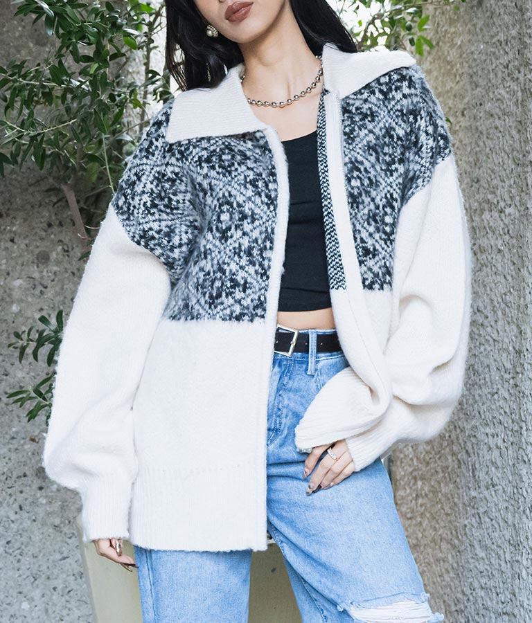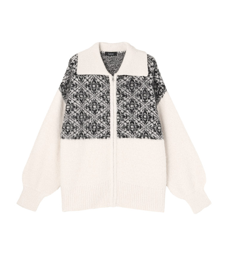 オリエンタル柄 モヘアニット カーディガン ブルゾン 長袖 495-2613
