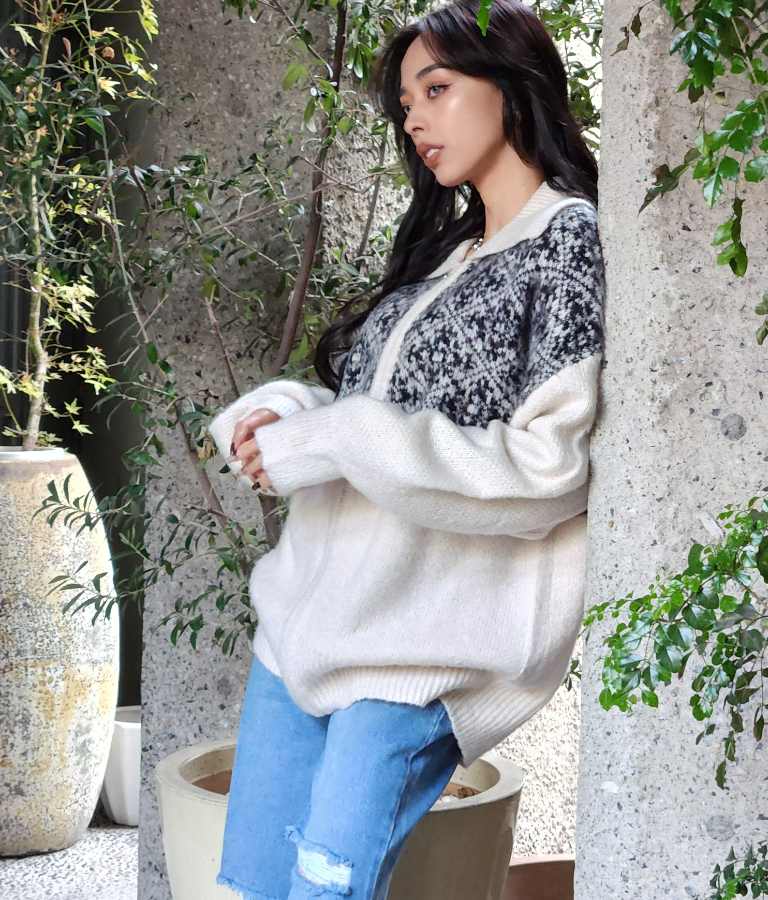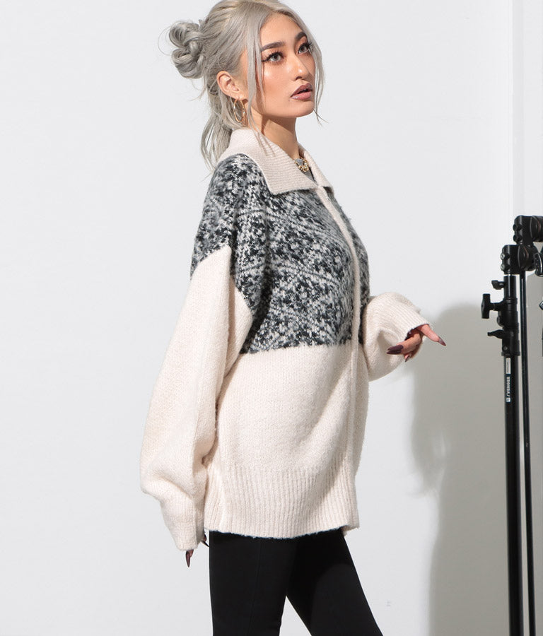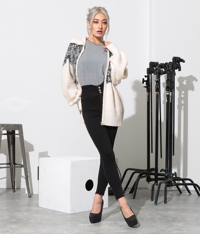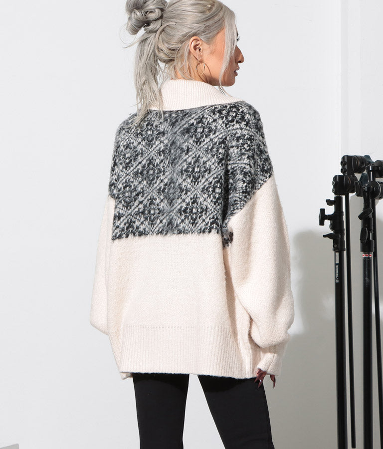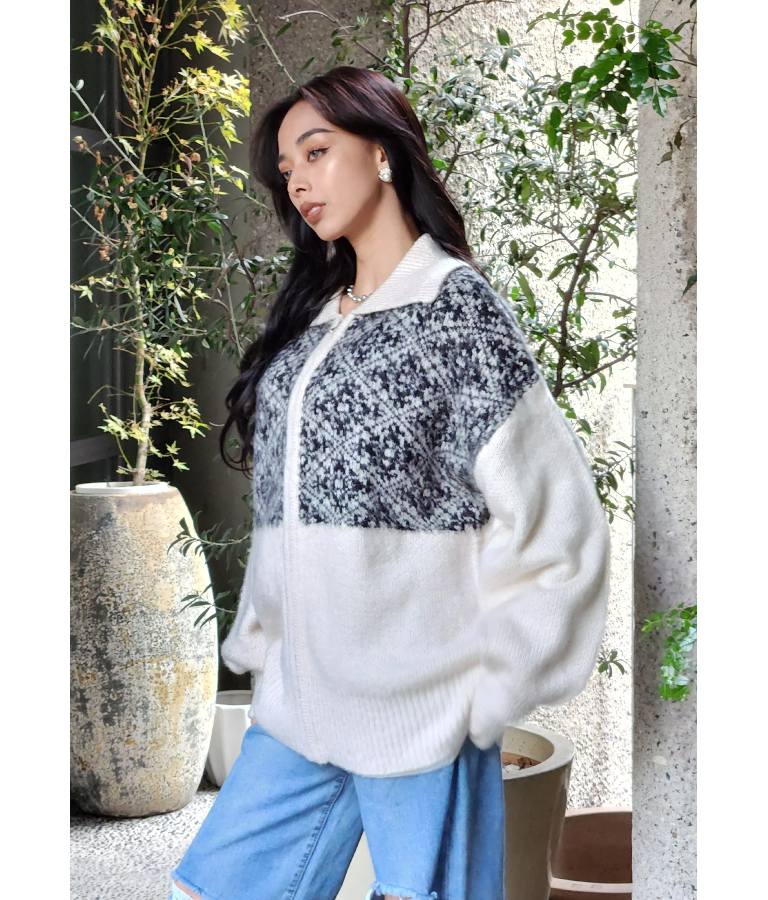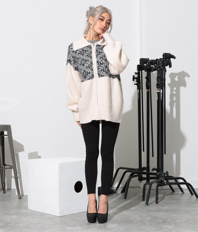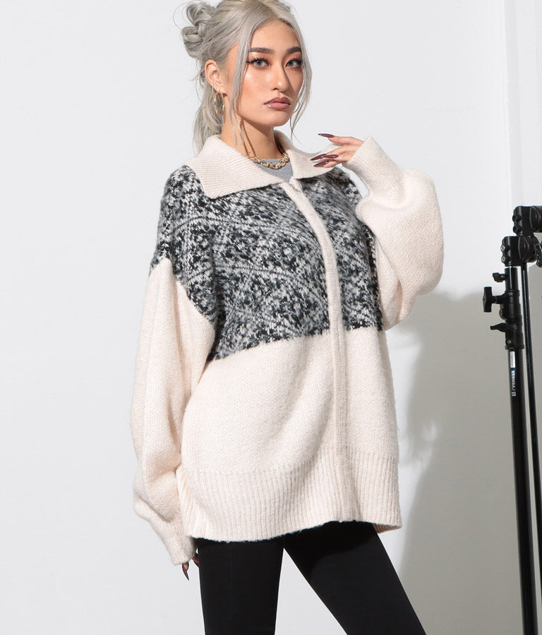 オリエンタル柄 モヘアニット カーディガン ブルゾン 長袖 495-2613