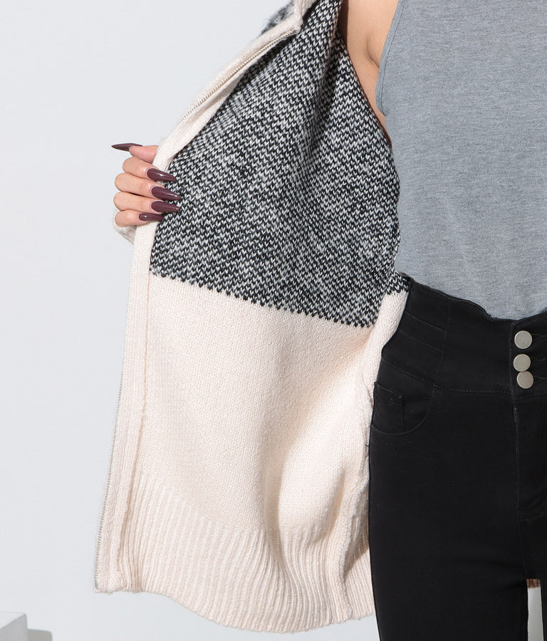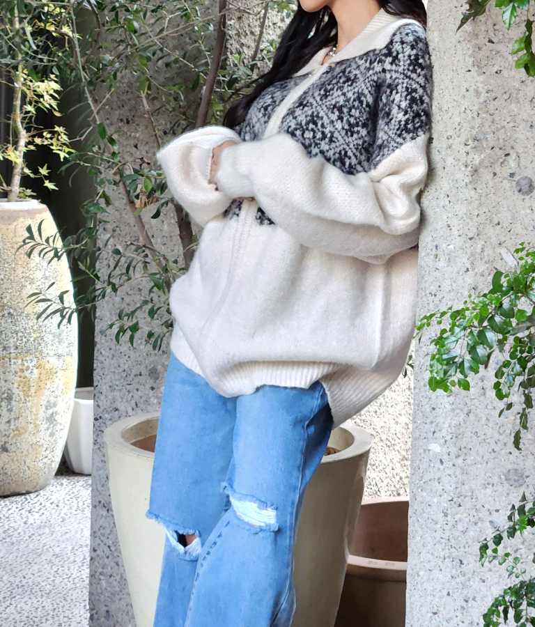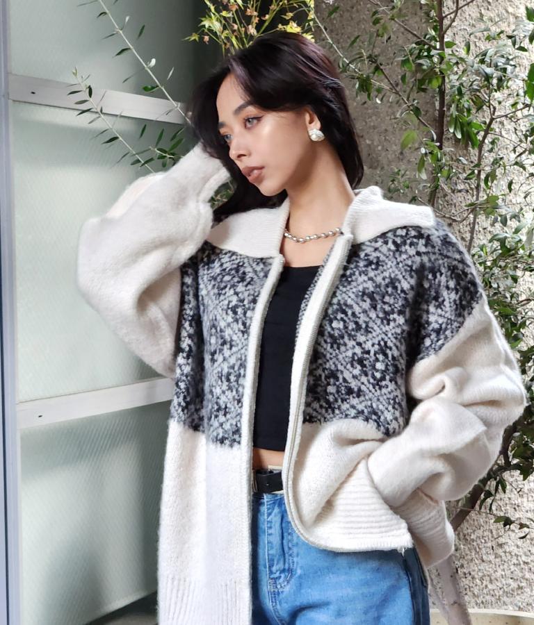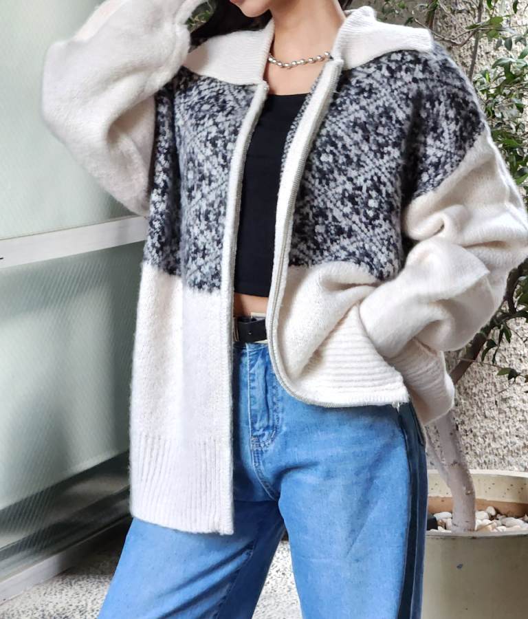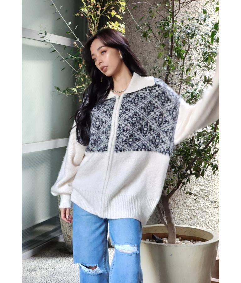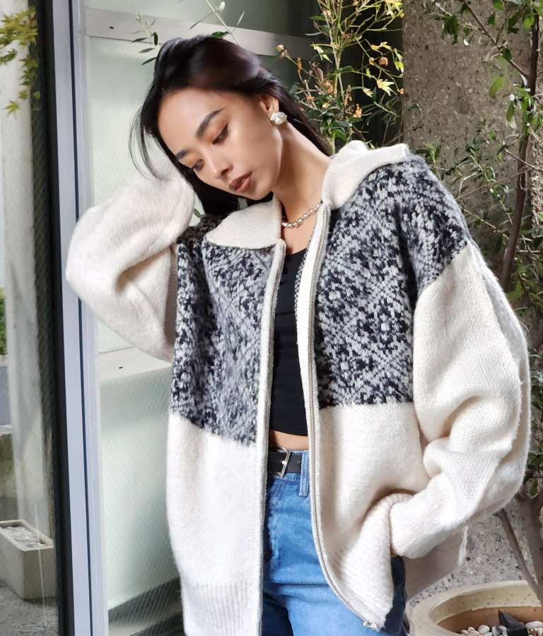 オリエンタル柄でこなれ感漂うブルゾンタイプのカーディガン。