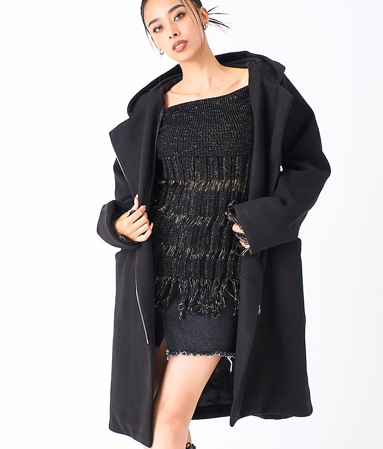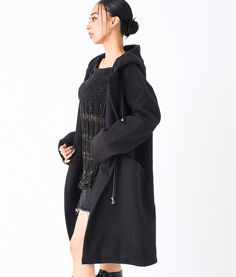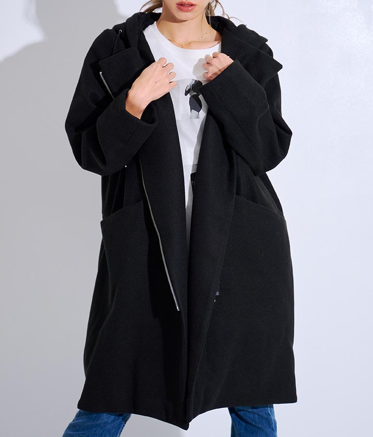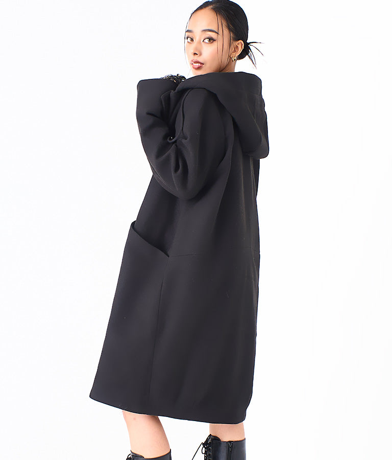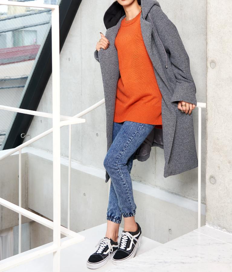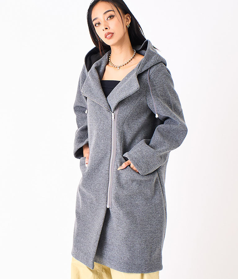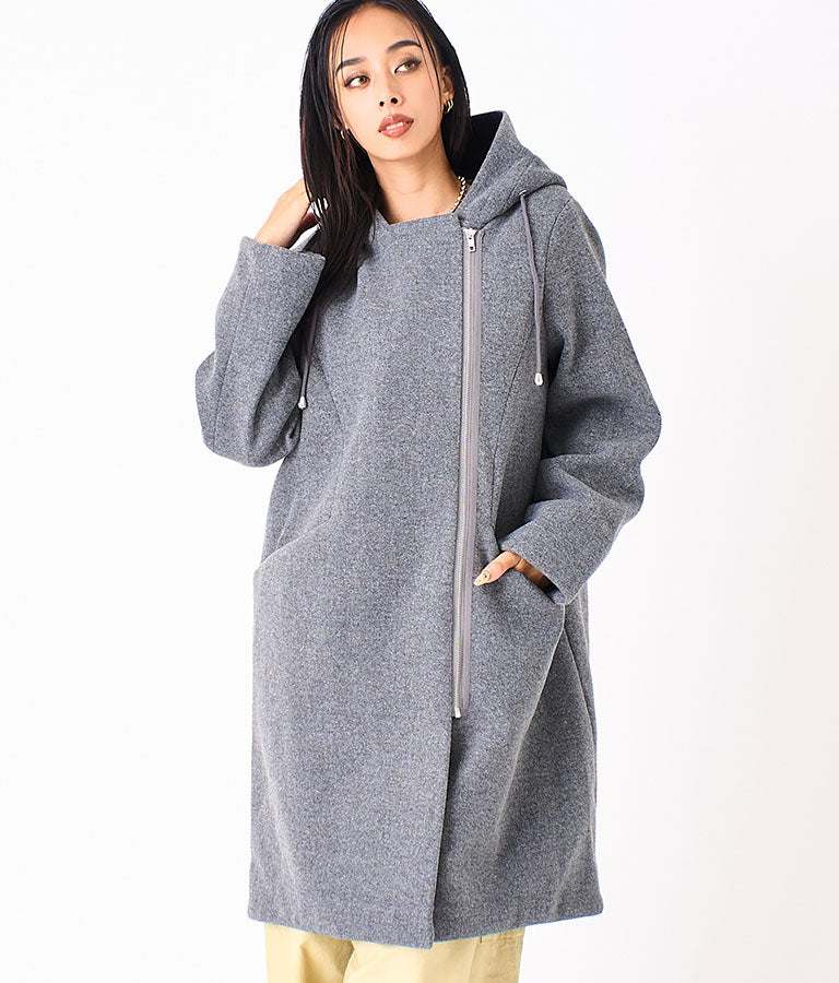 定番のウールタッチコートをフード付きでカジュアルに落とし込んだ1着。