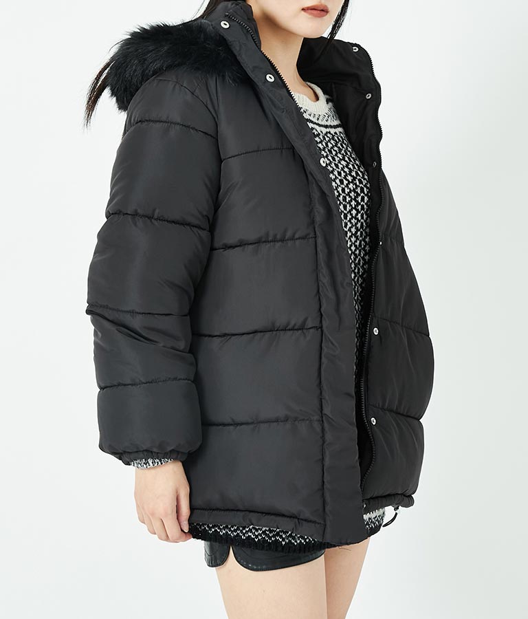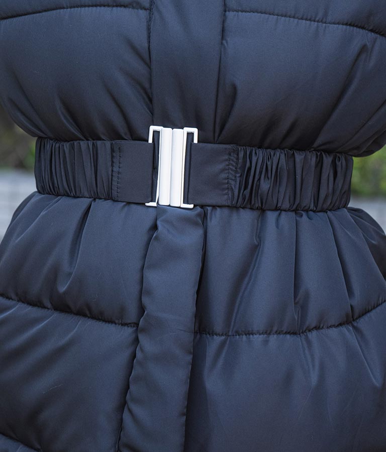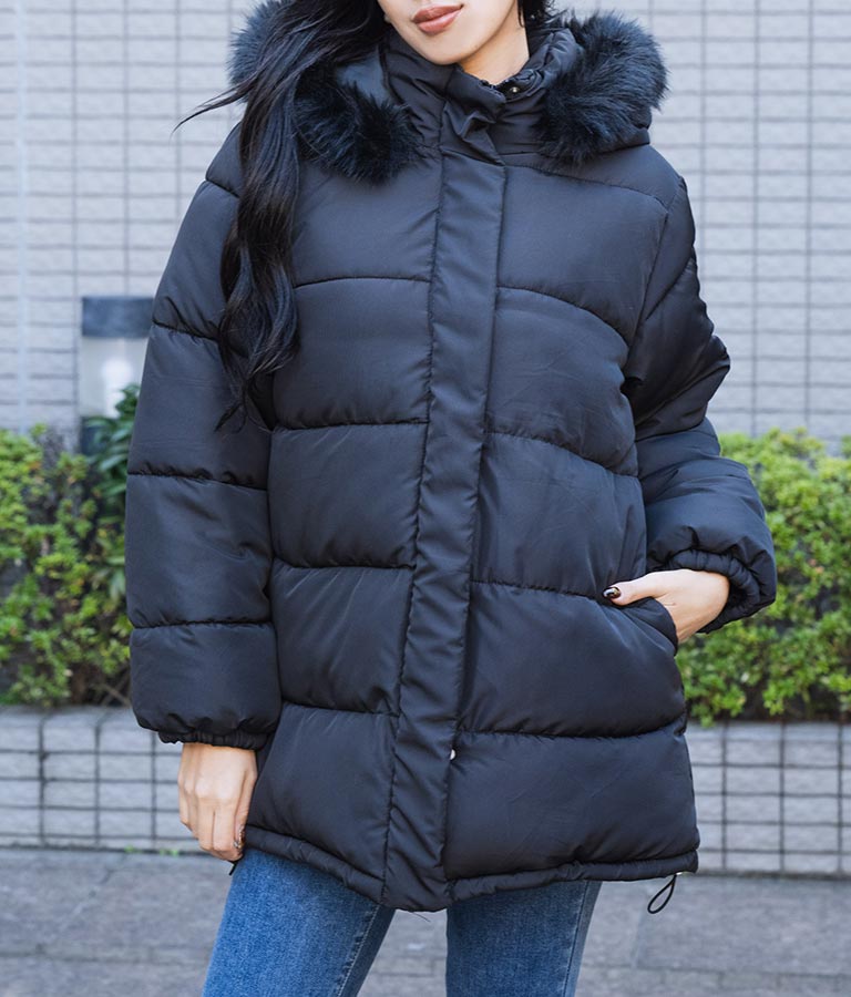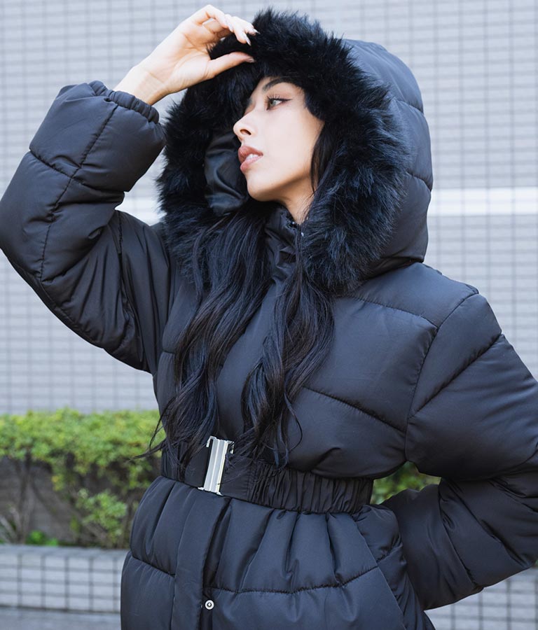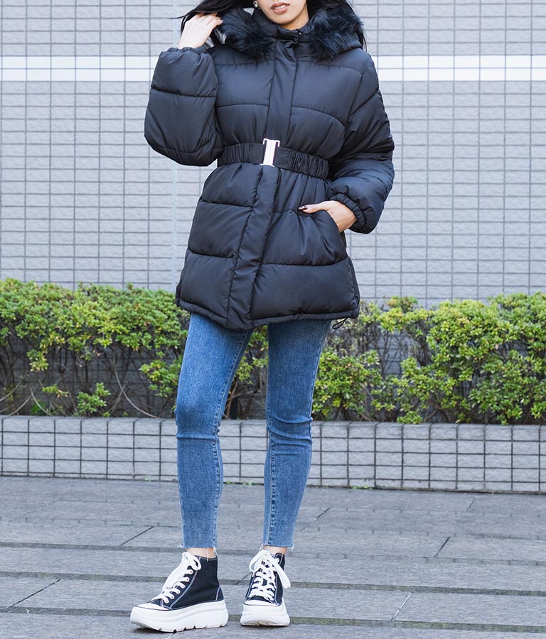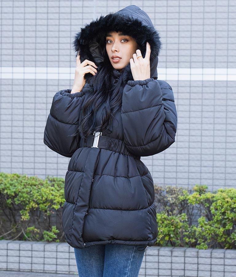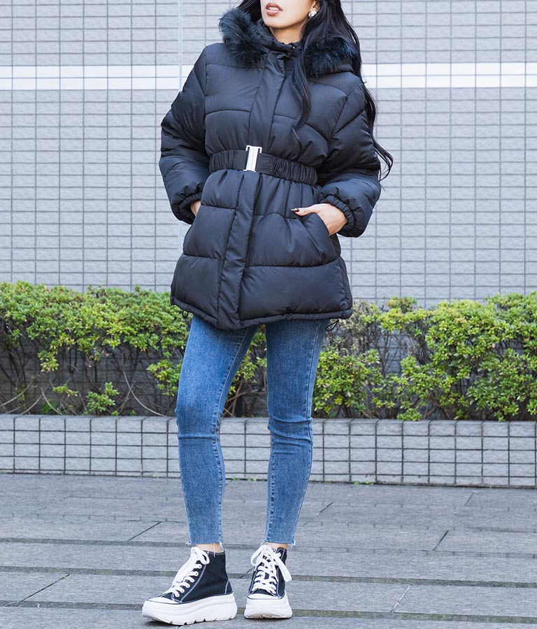 女性らしいグラマラスなシルエットを演出する中綿コート。