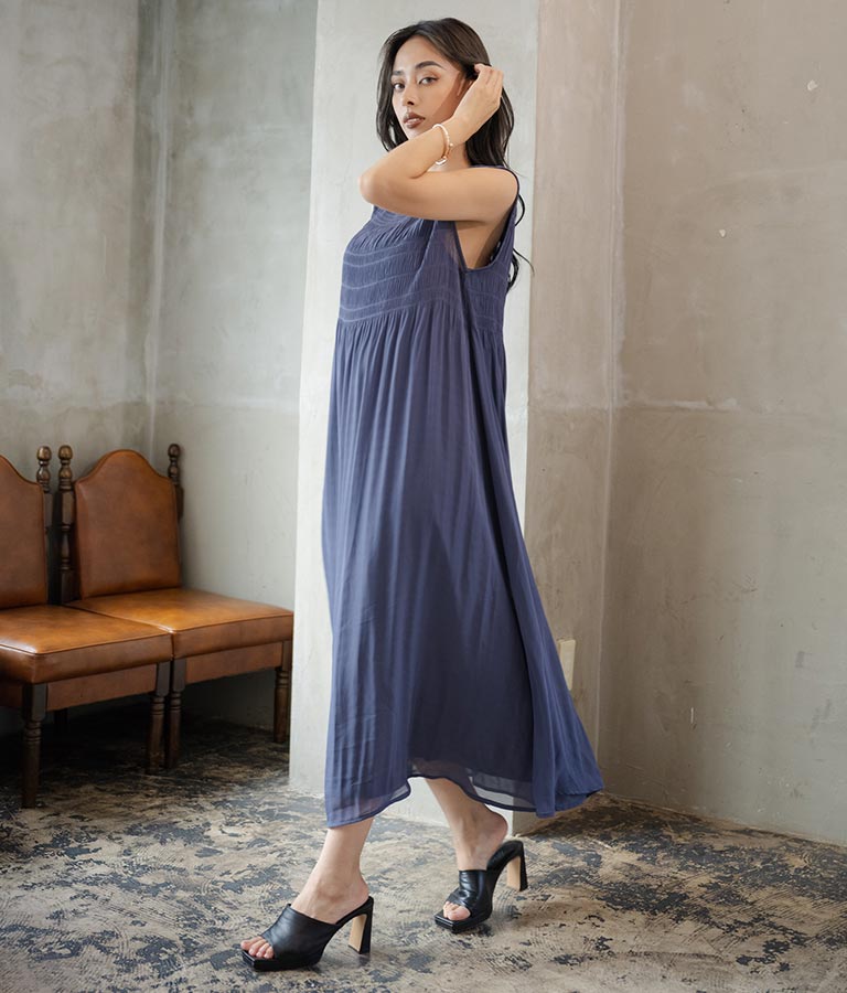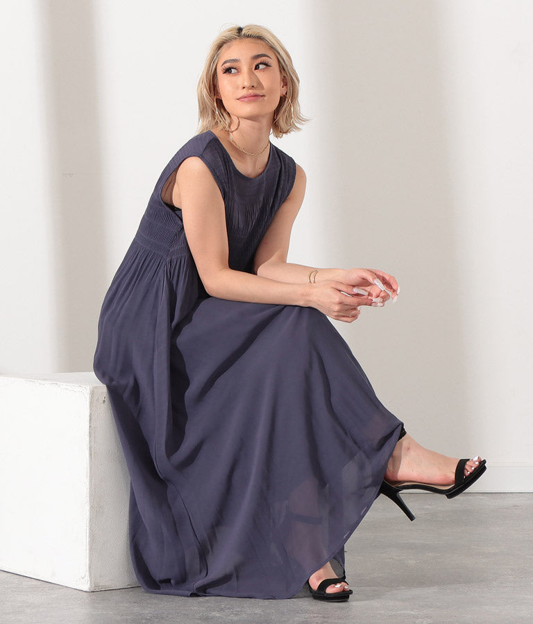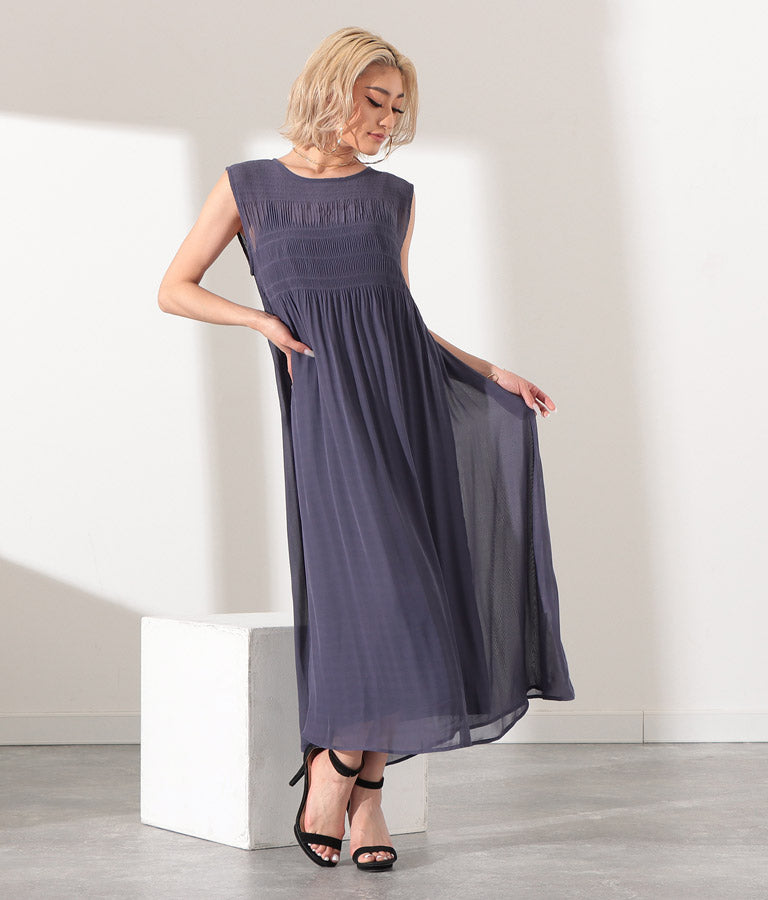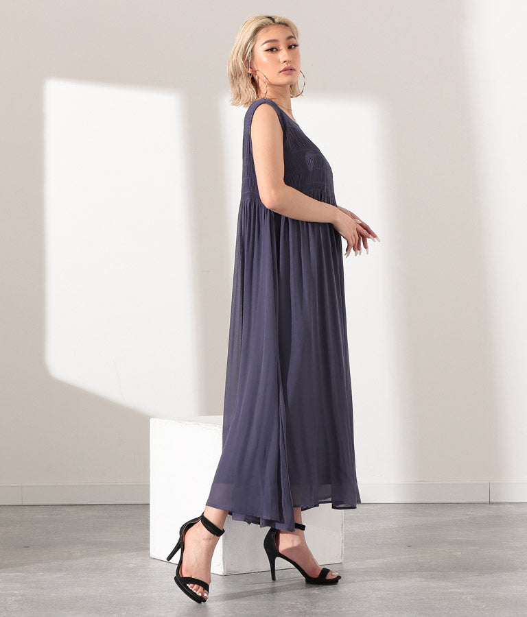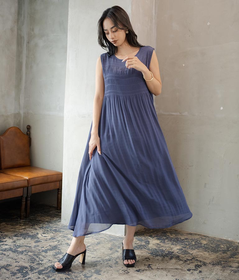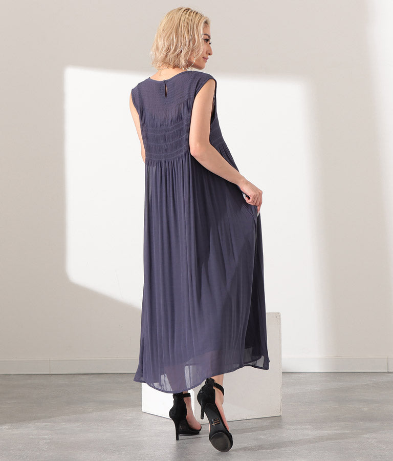 インナー キャミソール付 マジョリカ プリーツ ワンピース 498-2525