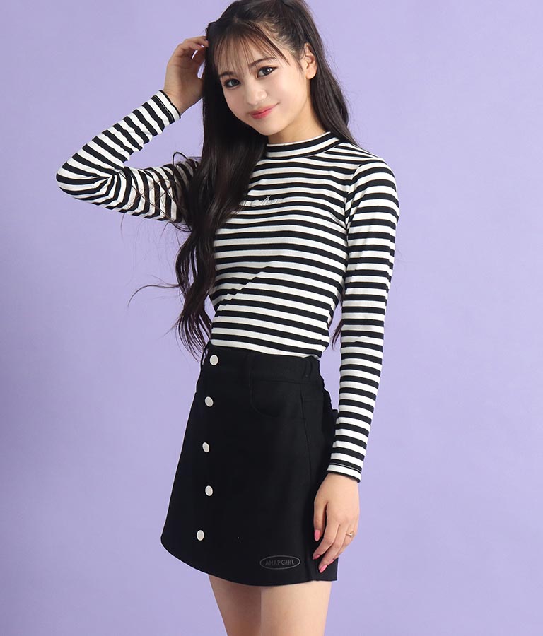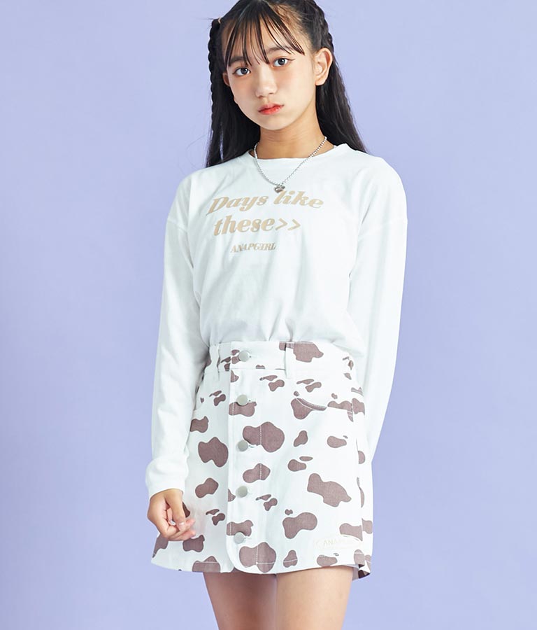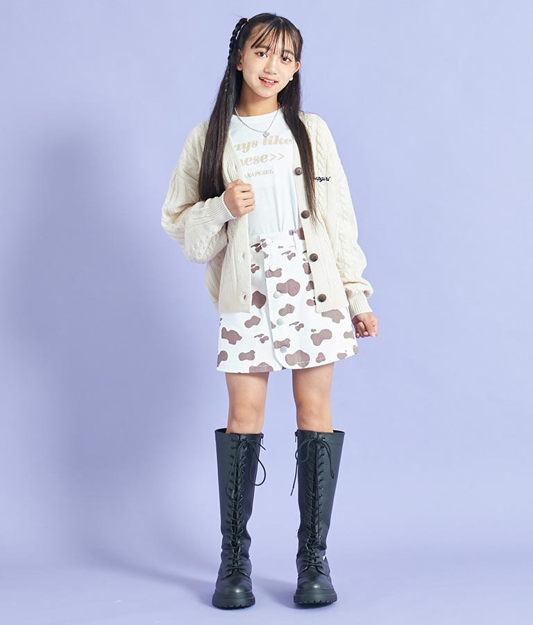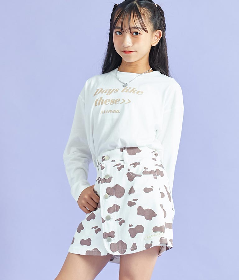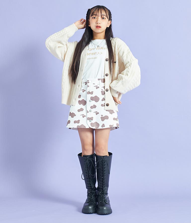 スカパンなので動きやすく女の子らしさを感じさせる台形のシルエットがポイント。