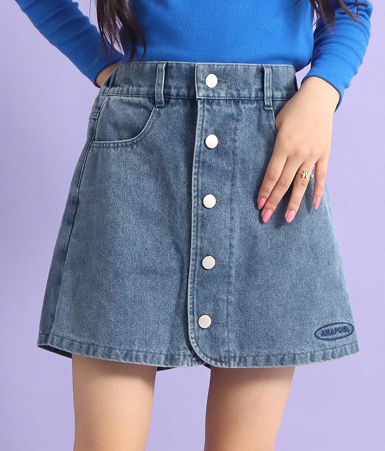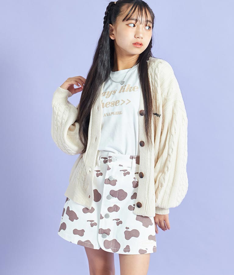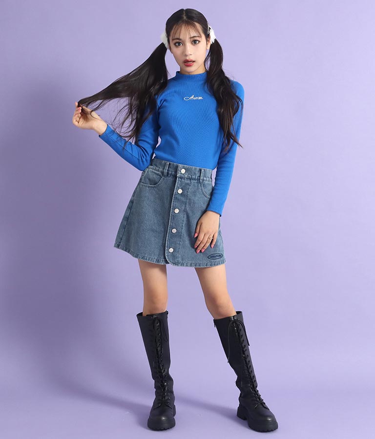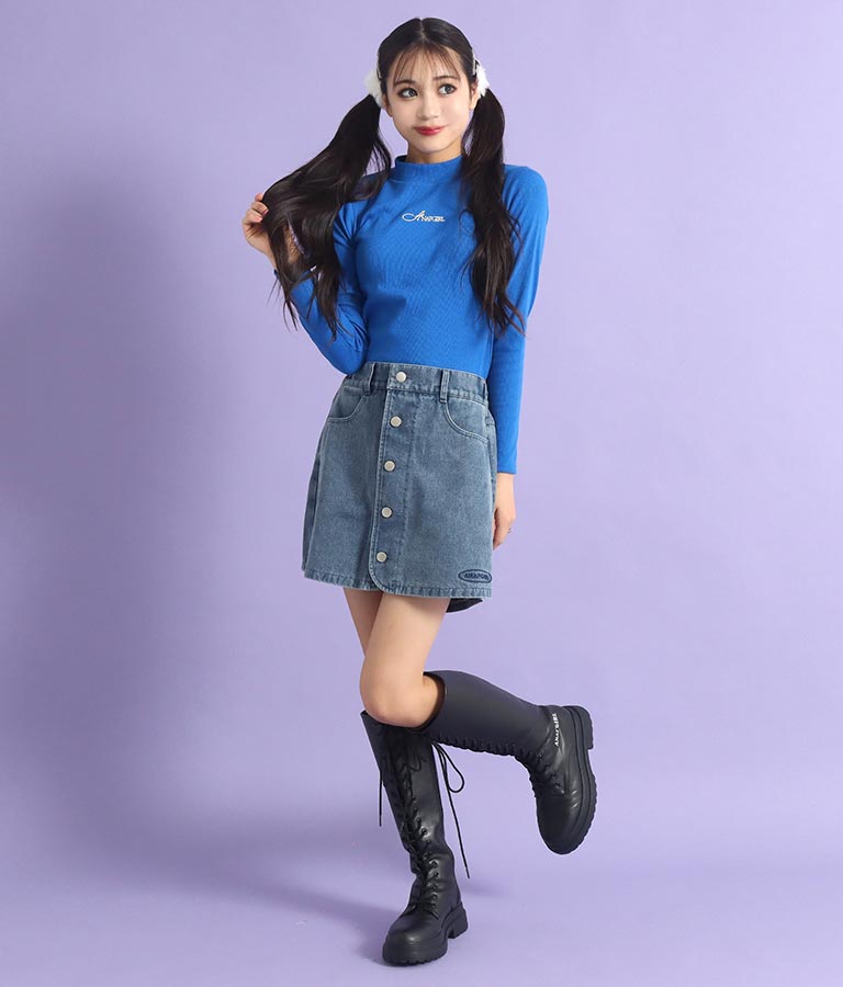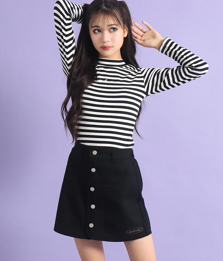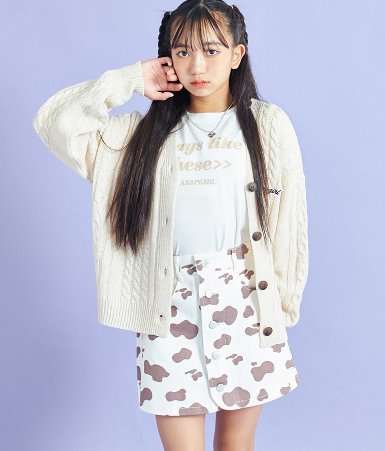 スカパンなので動きやすく女の子らしさを感じさせる台形のシルエットがポイント。