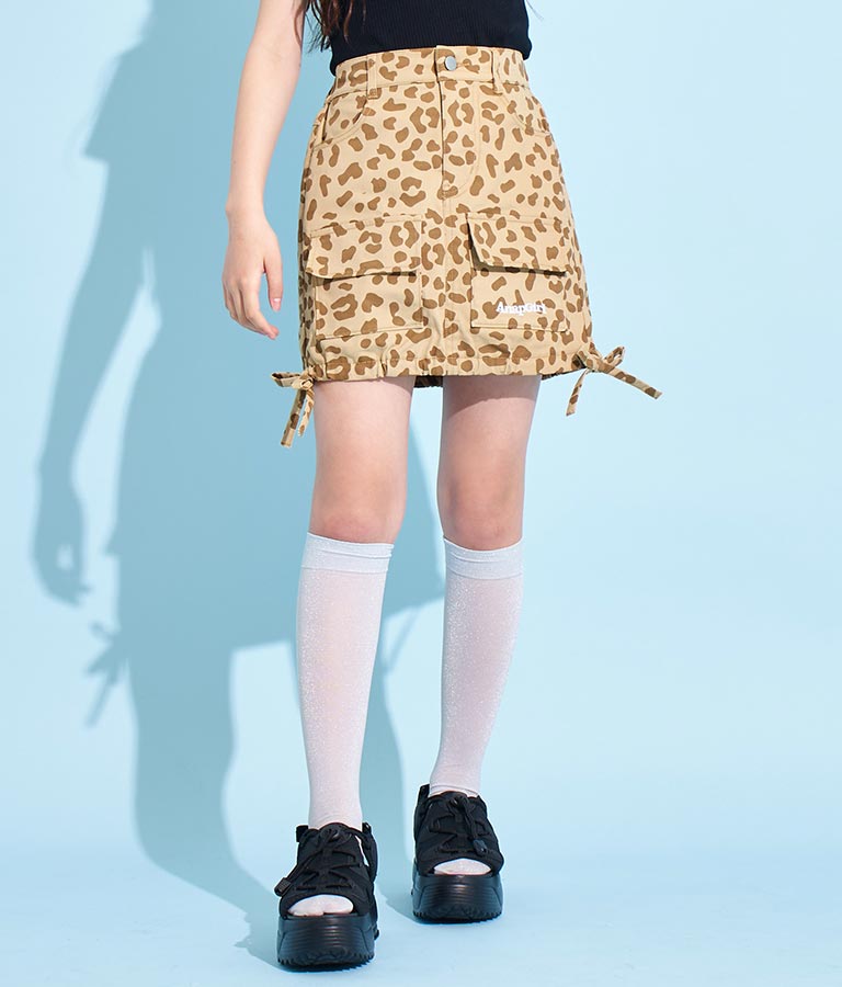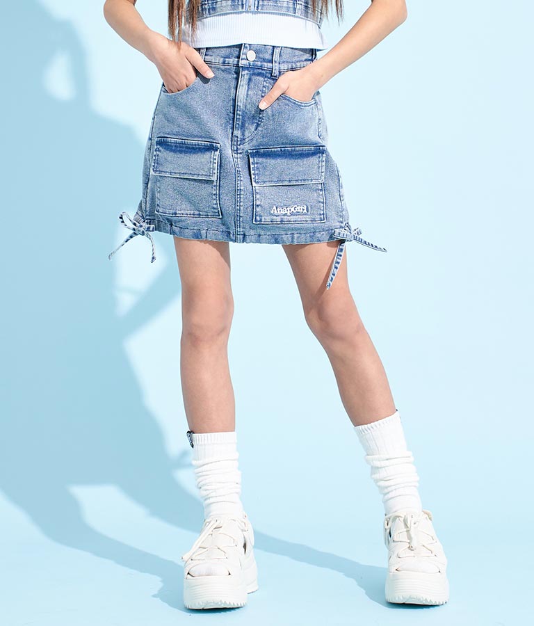 今っぽいカーゴデザインにサイドのリボンで可愛らしさをプラスしたミニスカート♪