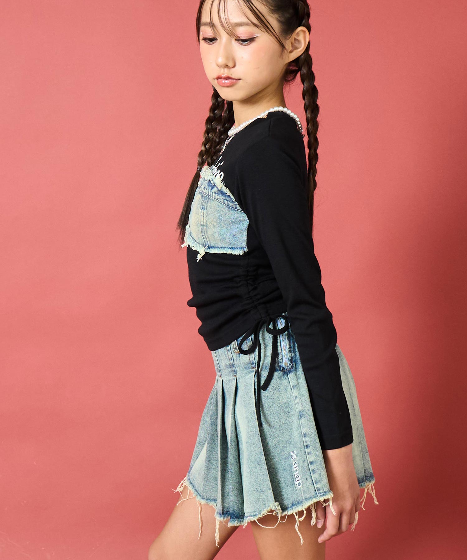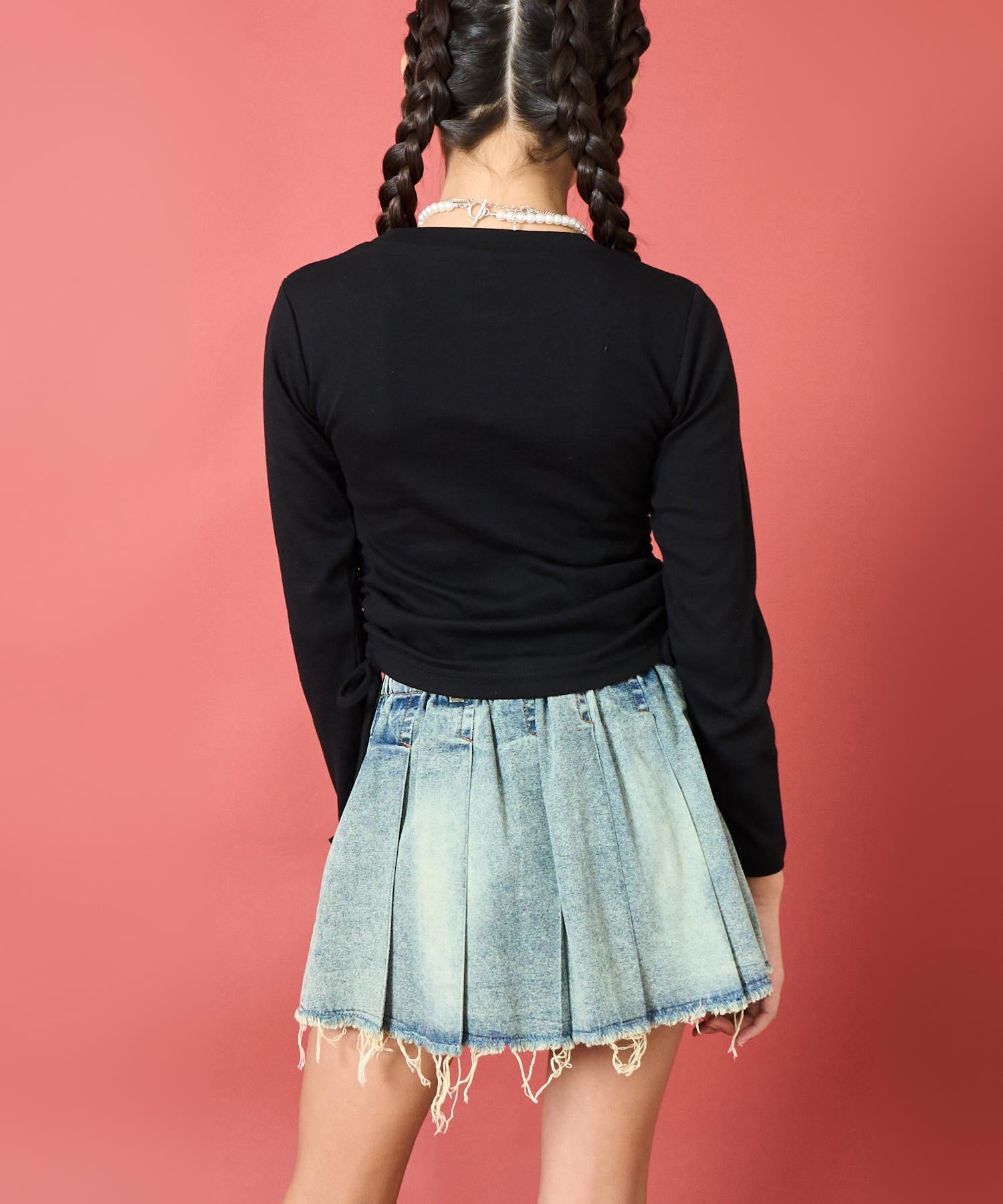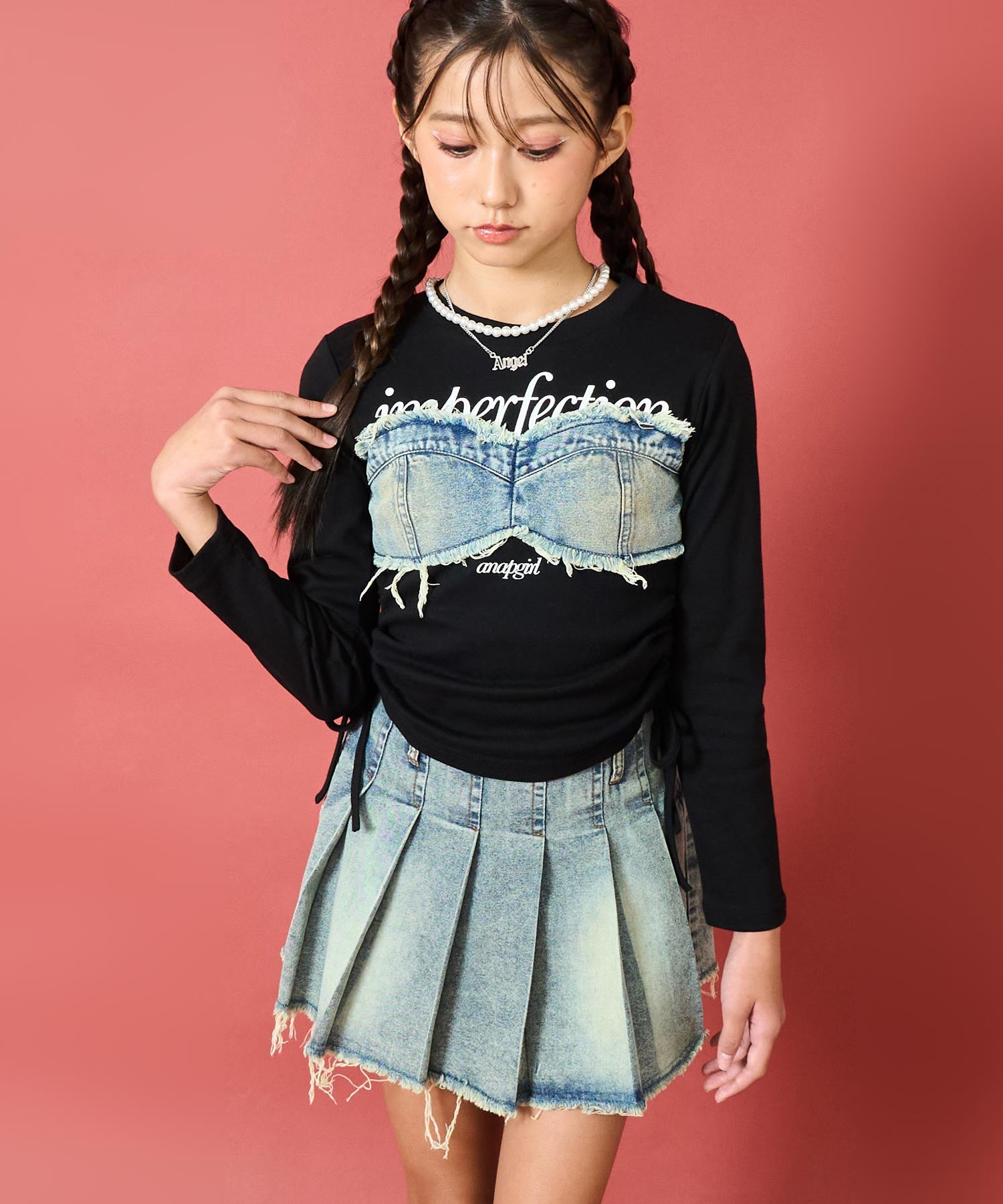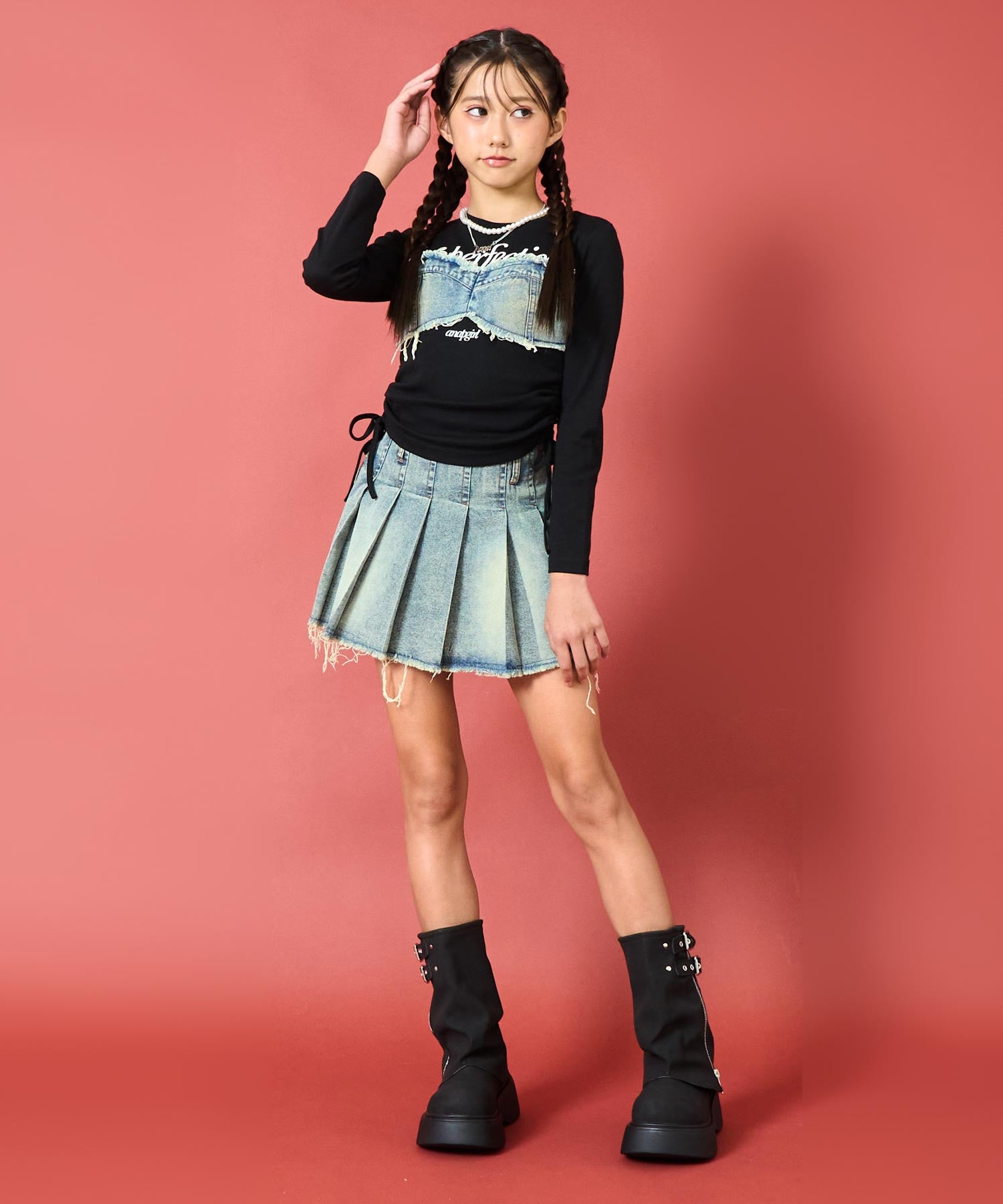 クラッシュ デニム プリーツ スカート【キッズお揃い】 911-7647