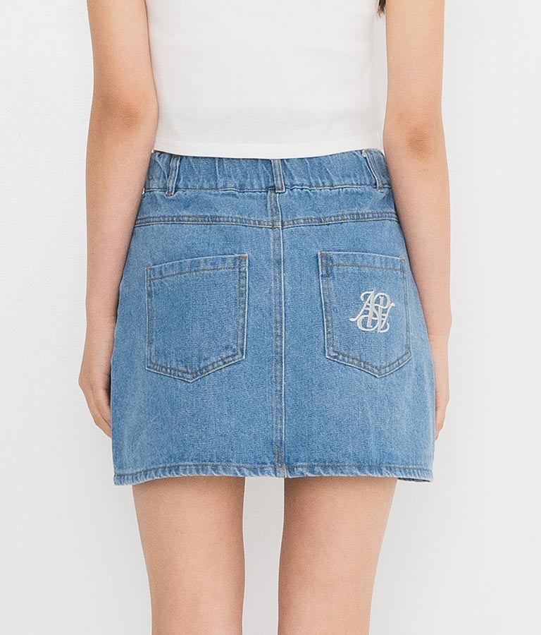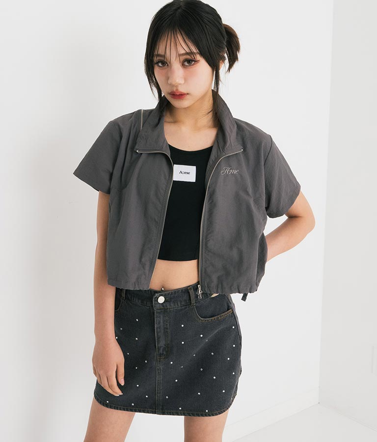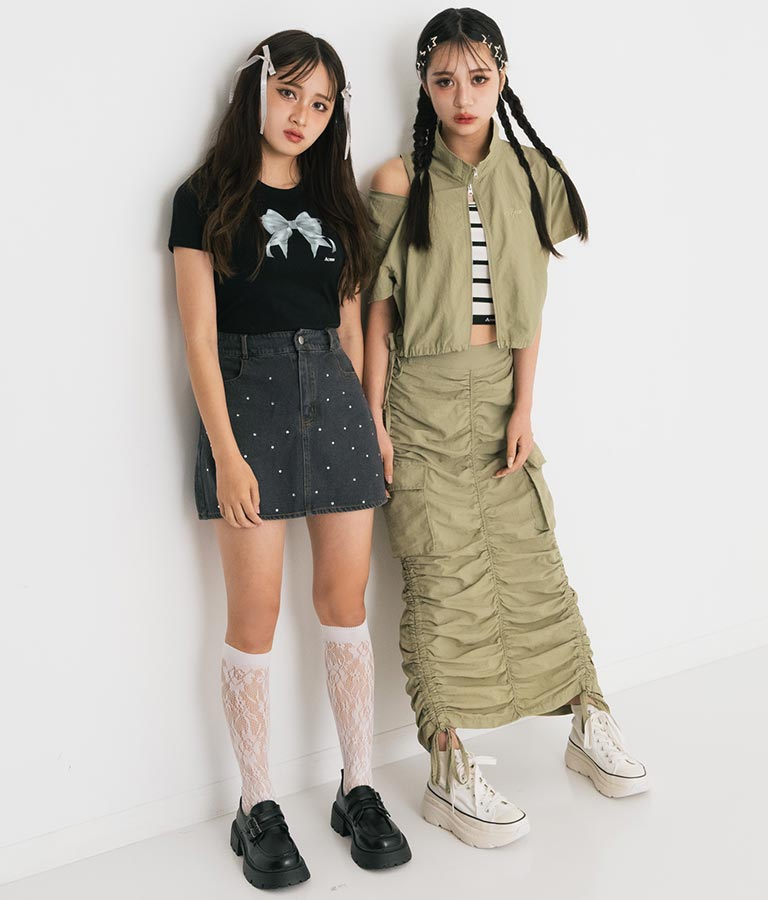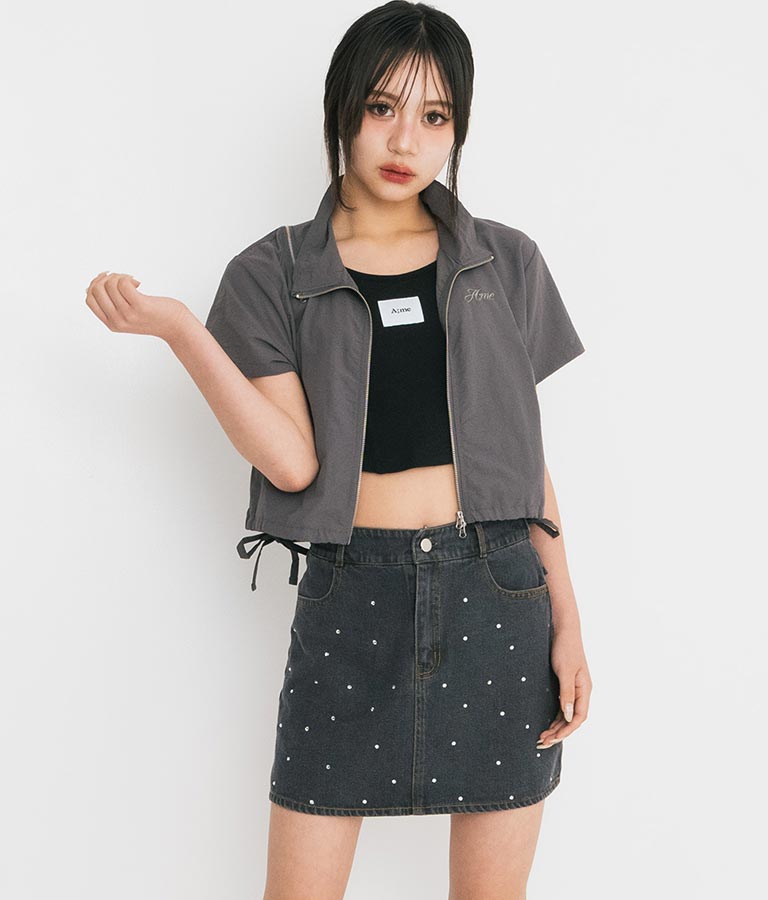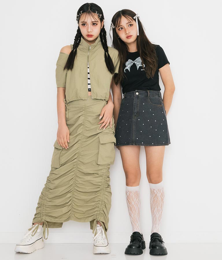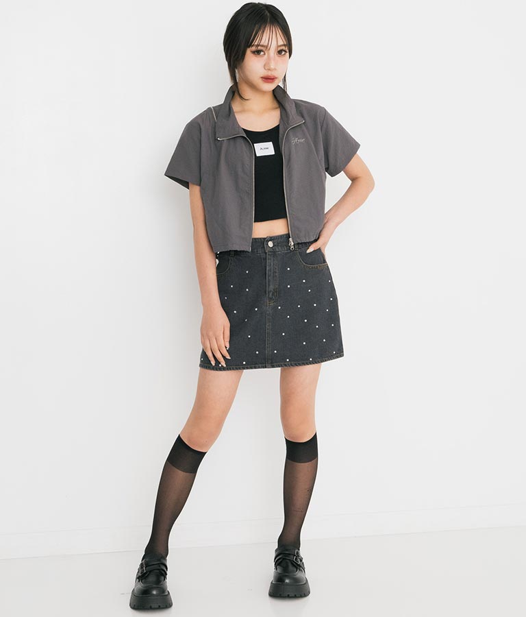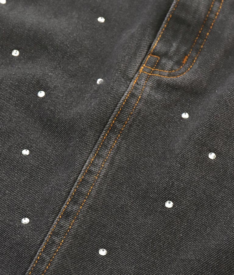 キラキラのラインストーンを散りばめたデザインがトレンド感たっぷりなデニムスカート。