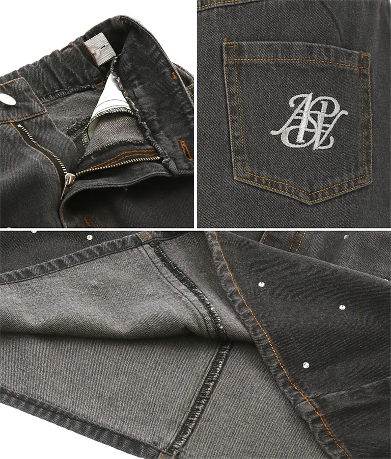 ※ウエスト内側部分はゴムで絞れ、ボタンで留めて調節が出来る仕様になっています。 ※ラインストーン加工が施されている為、お取扱いにご注意ください。