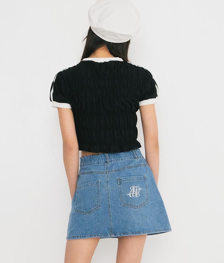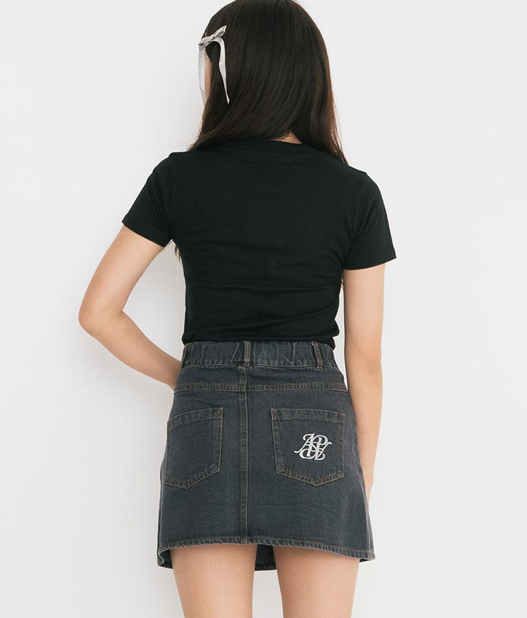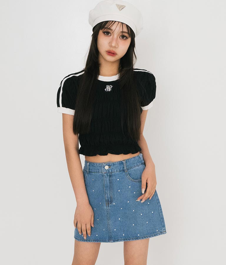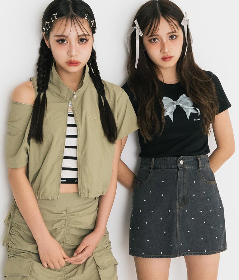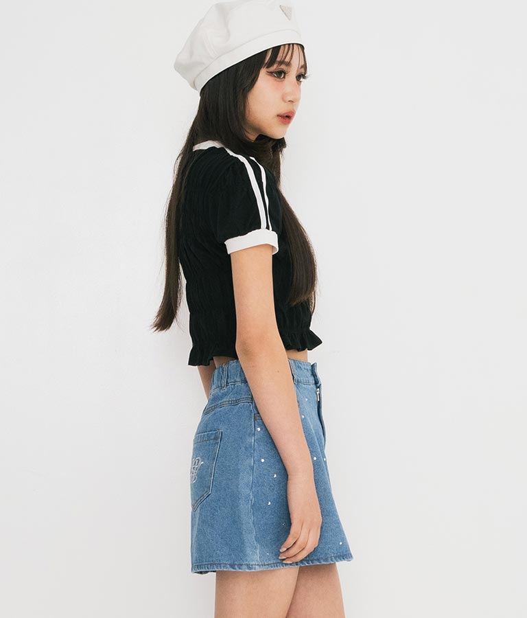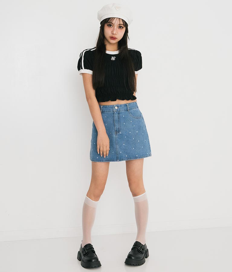 【ティーンズライン】ラインストーン デニム ミニ スカート (M、Lサイズ展開) -