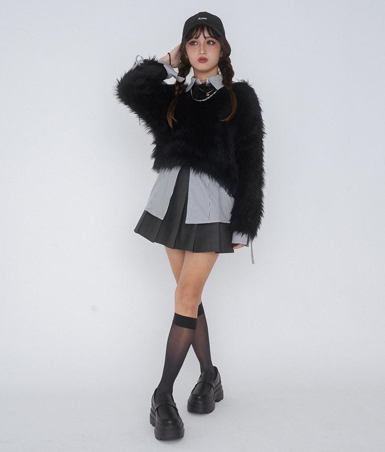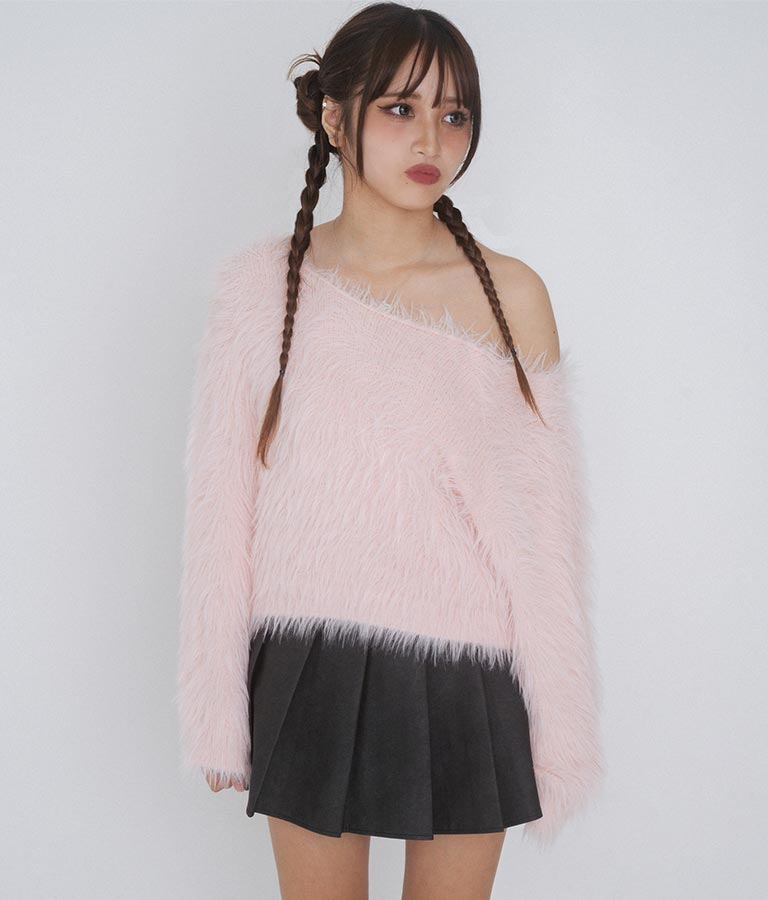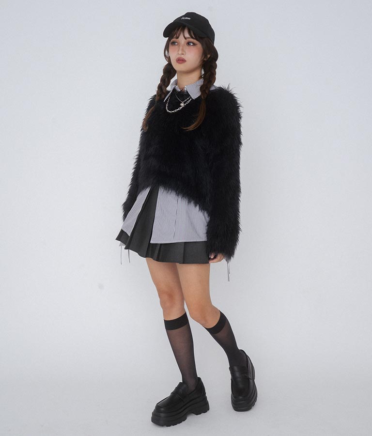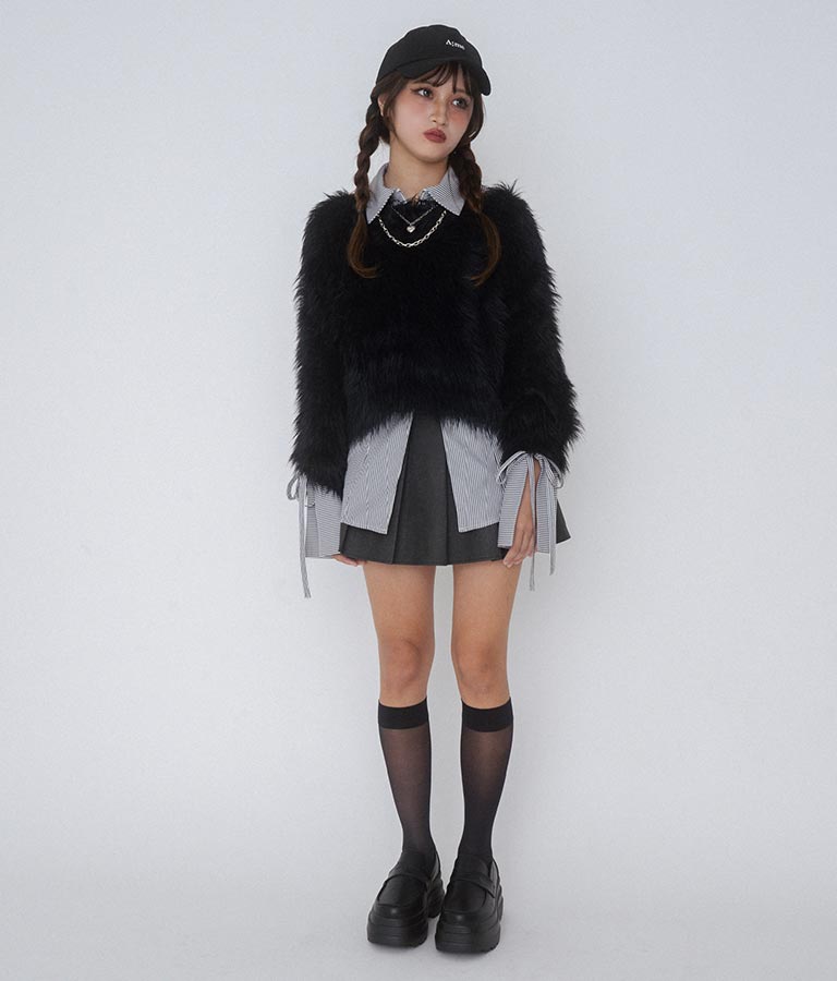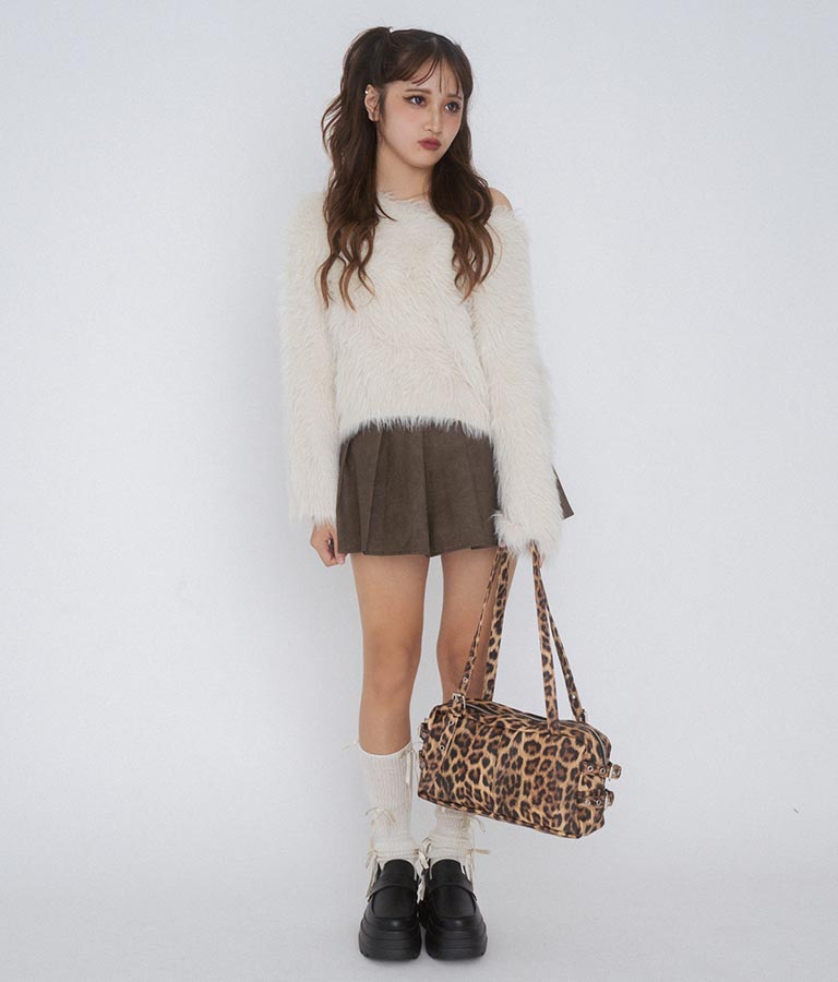 フェイクレザーなので可愛い過ぎない、強めコーデにも挑戦しやすいシルエットです。