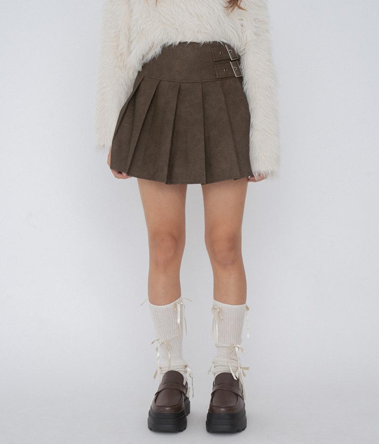 【ティーンズライン】フェイクレザー プリーツ スカート -