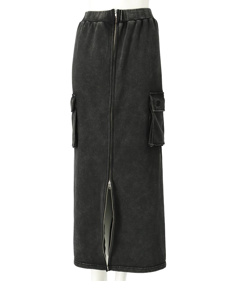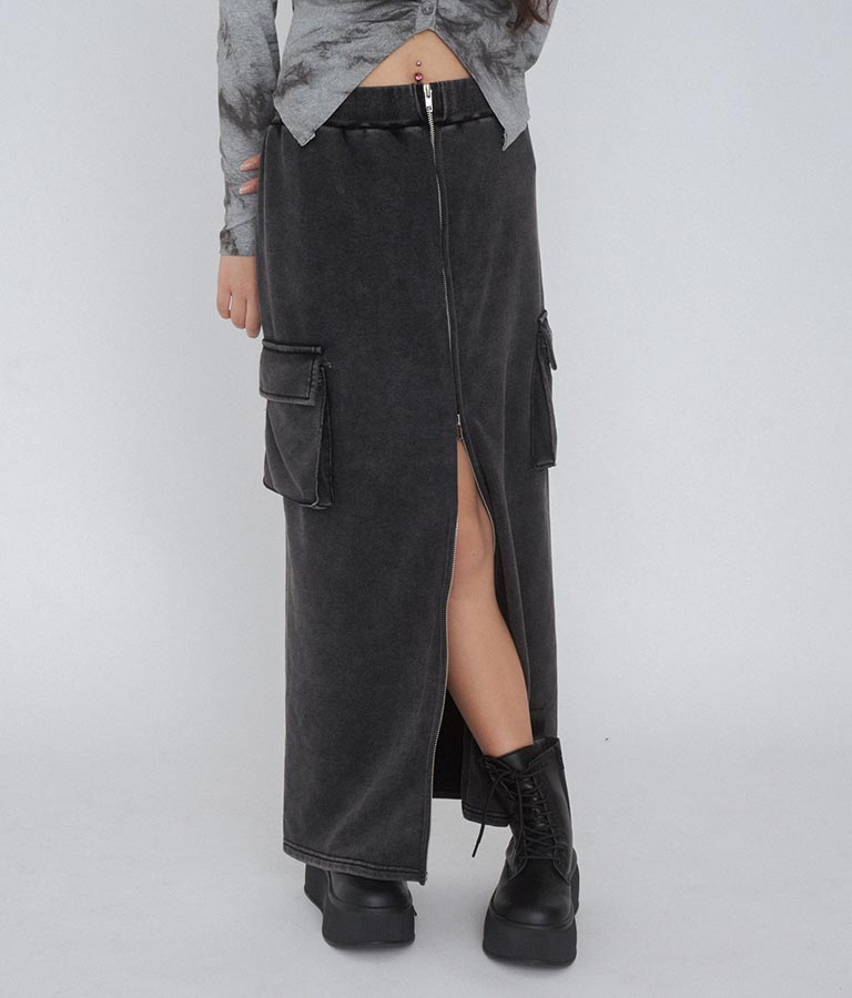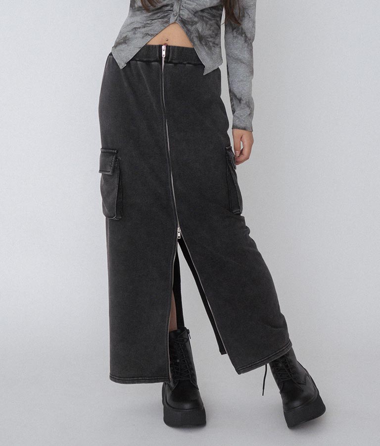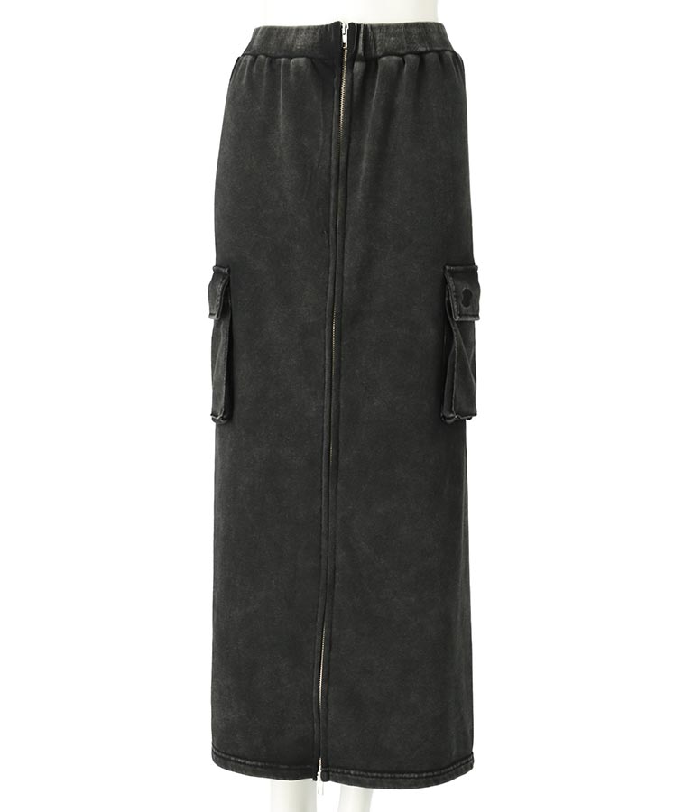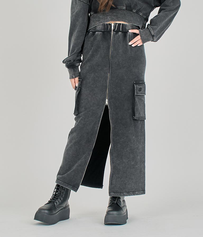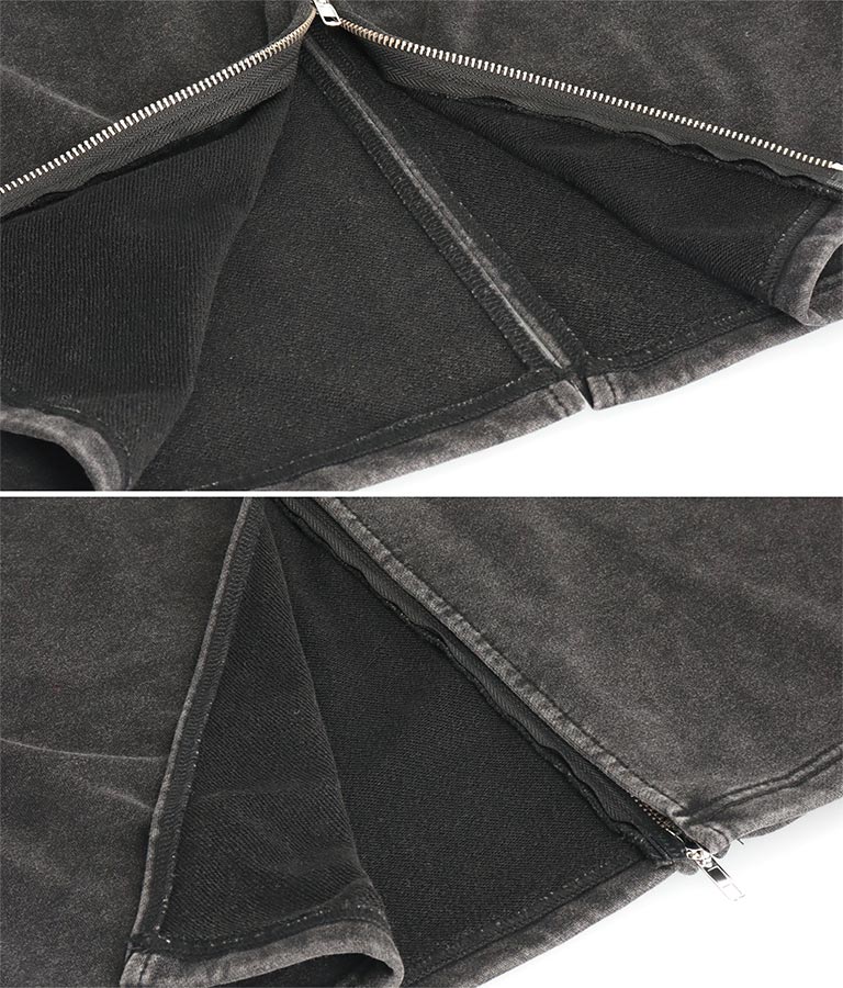 【ティーンズライン】ユーズド加工 ダブルジップ スウェット ロング スカート (M、Lサイズ展開) -