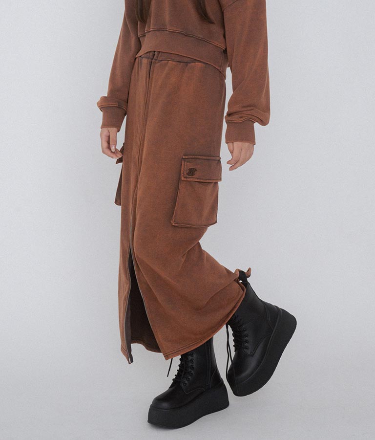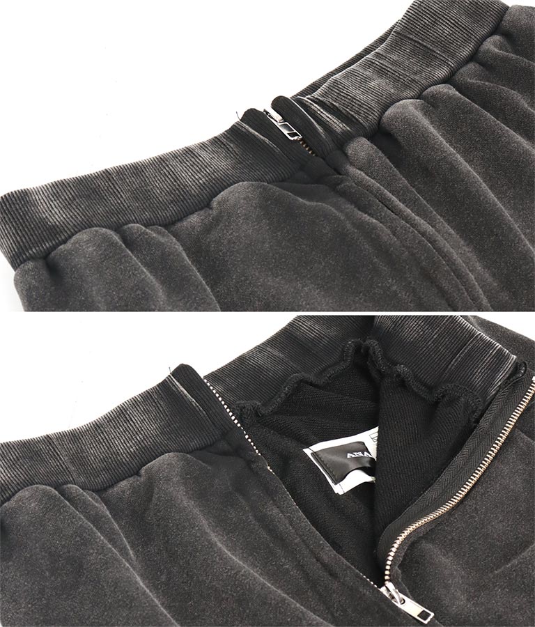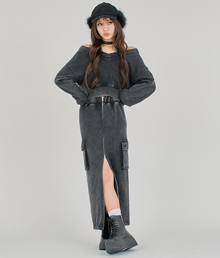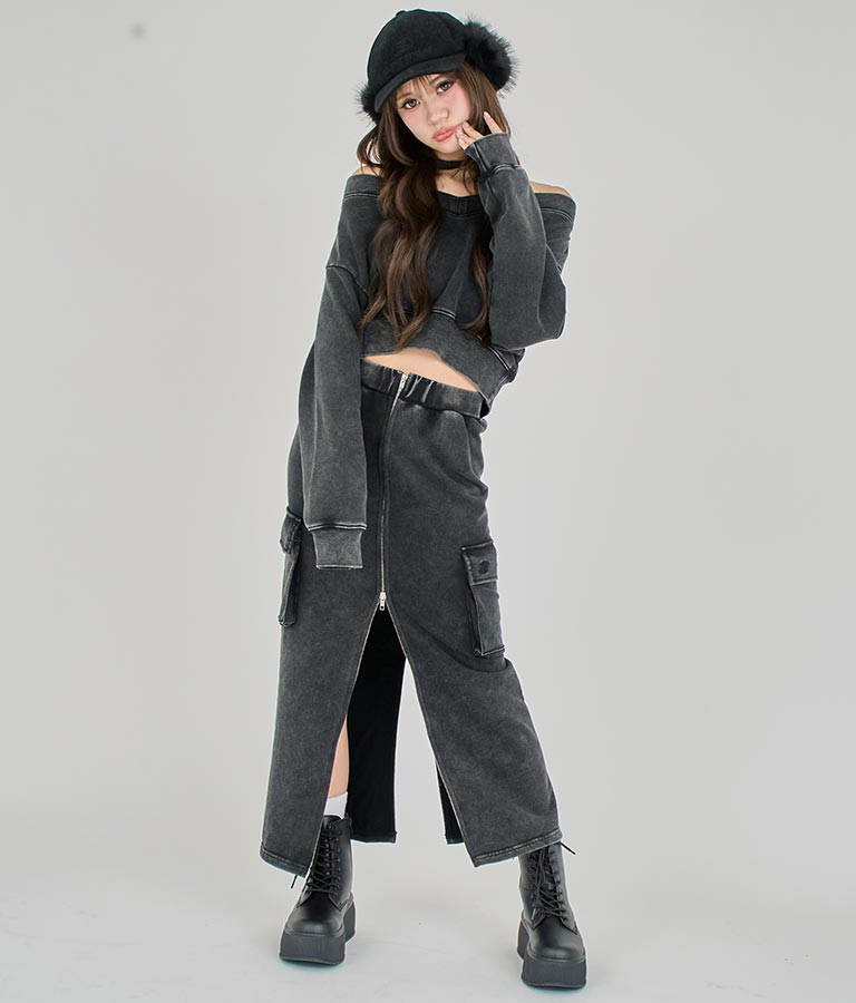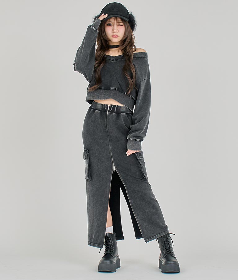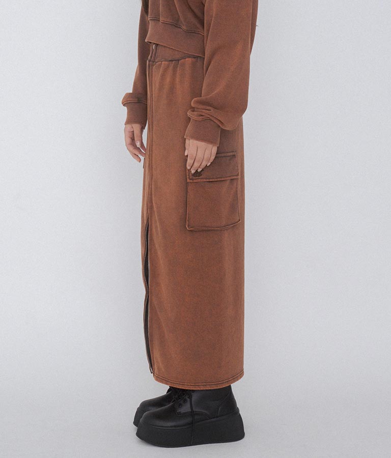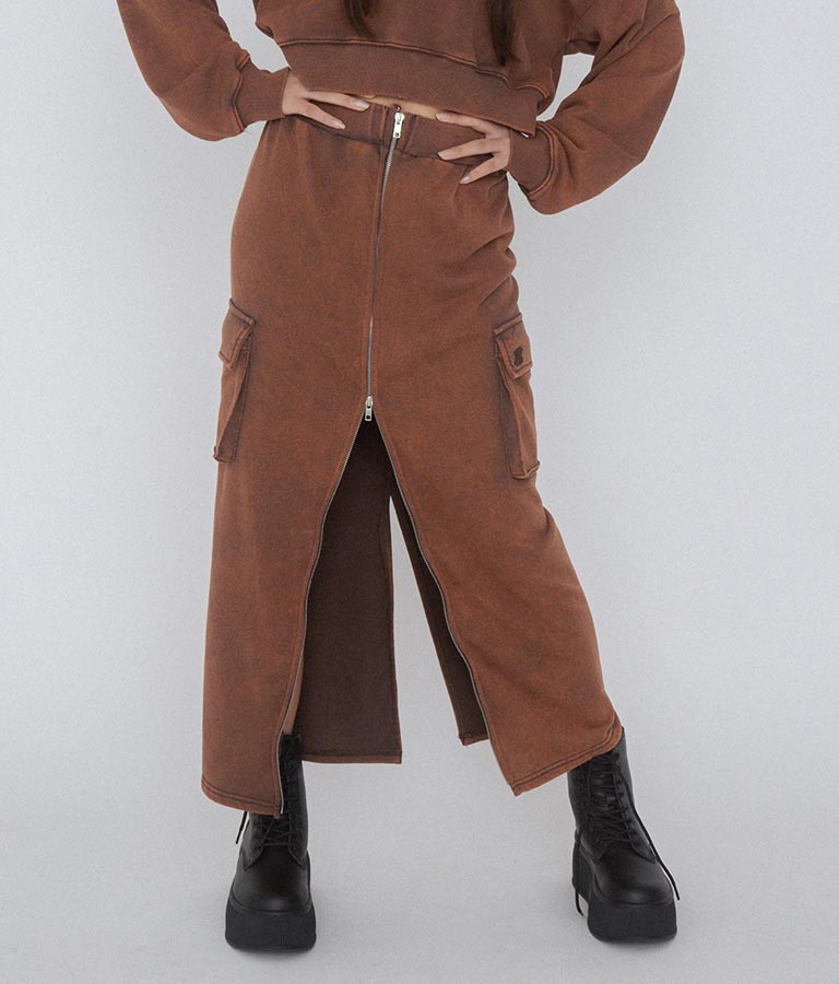 【ティーンズライン】ユーズド加工 ダブルジップ スウェット ロング スカート (M、Lサイズ展開) -