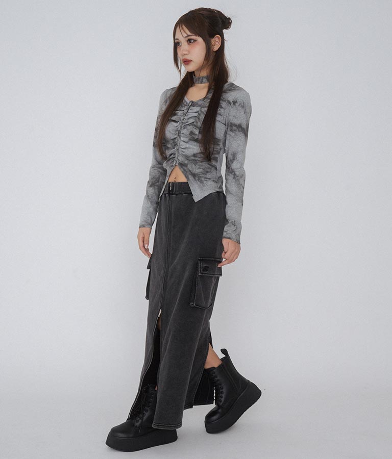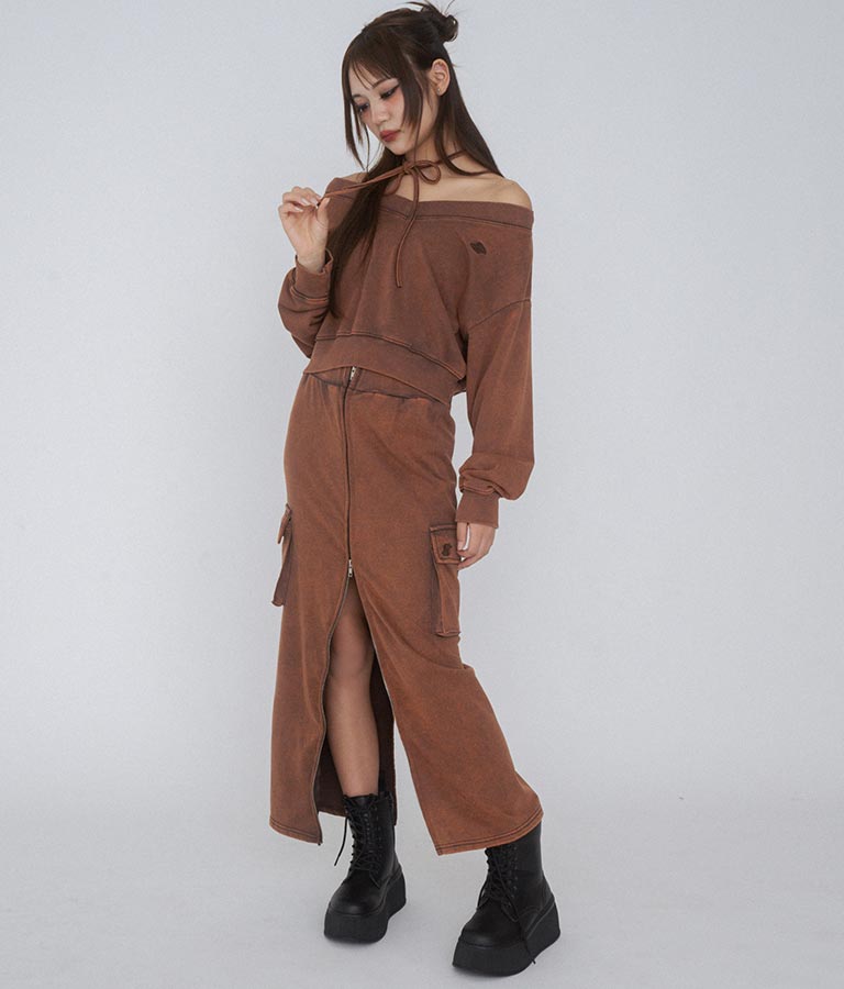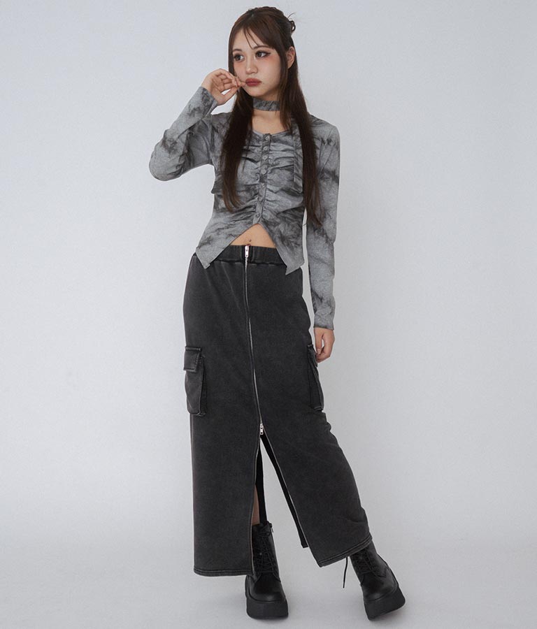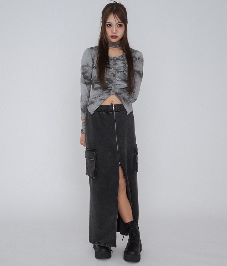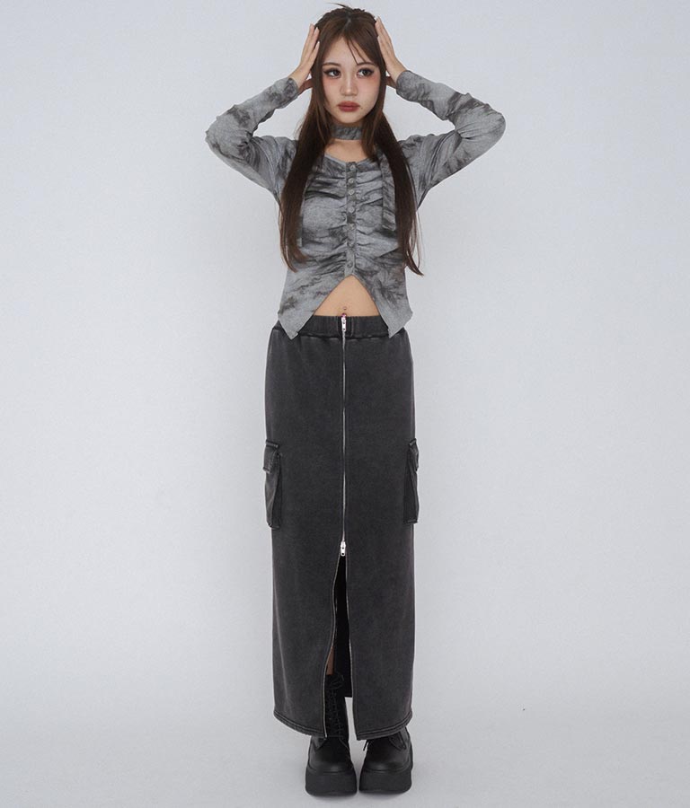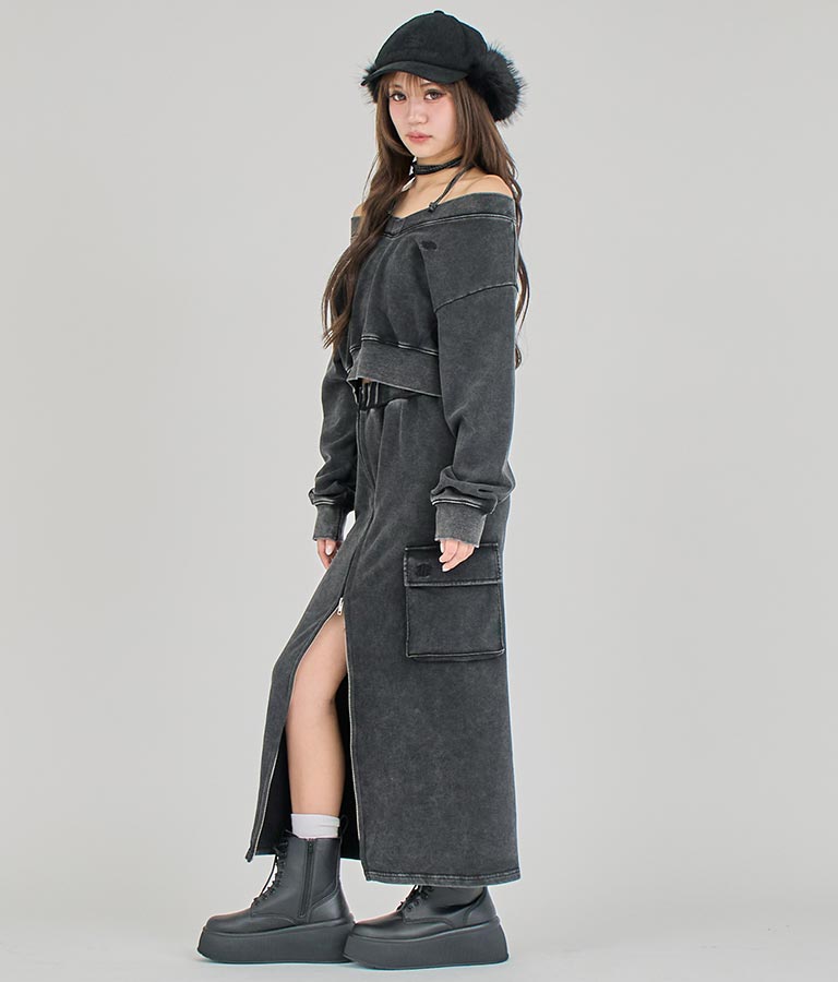 【ティーンズライン】ユーズド加工 ダブルジップ スウェット ロング スカート (M、Lサイズ展開) -