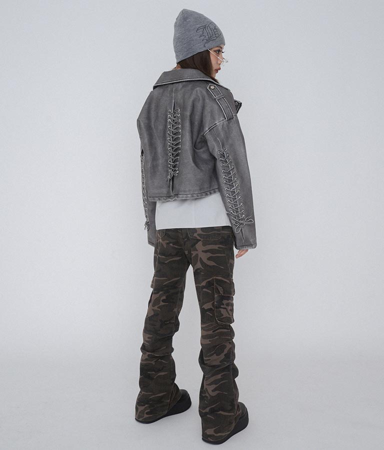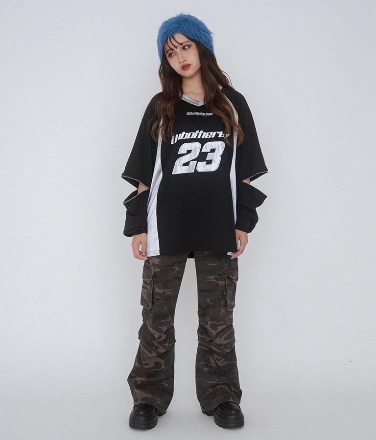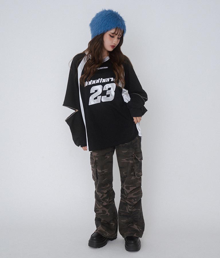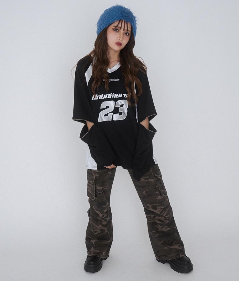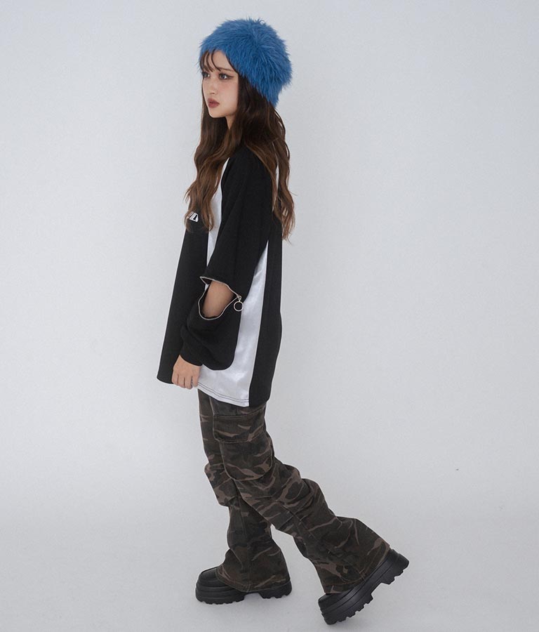 ひざ下にデザインがあることでルーズ感が出て強めスタイルに仕上がります★
