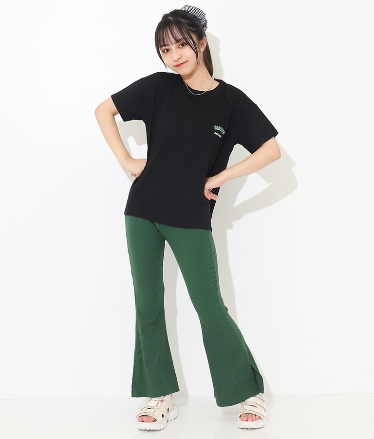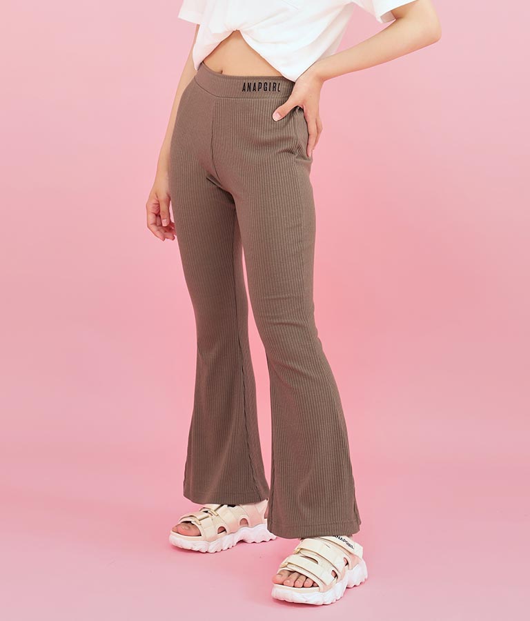 刺繍 リブ フレア パンツ 912-6907