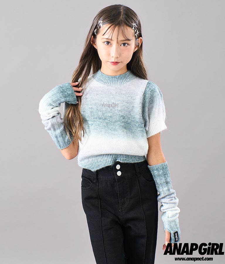 アームウォーマー付グラデニットトップス