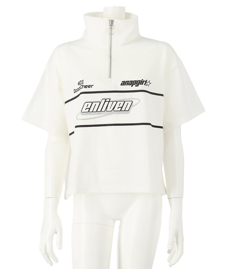 スポーティー ロゴ ハーフ ジップTシャツ -