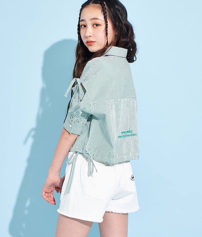 裾にもリボン付きで、絞ってお好みのシルエットに変化を加えることができます。