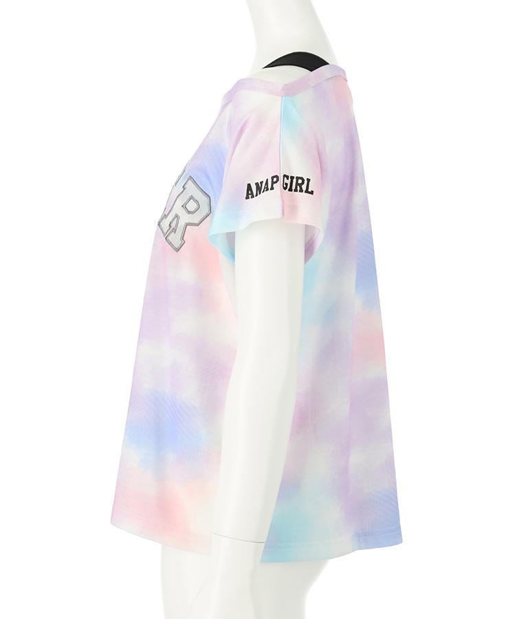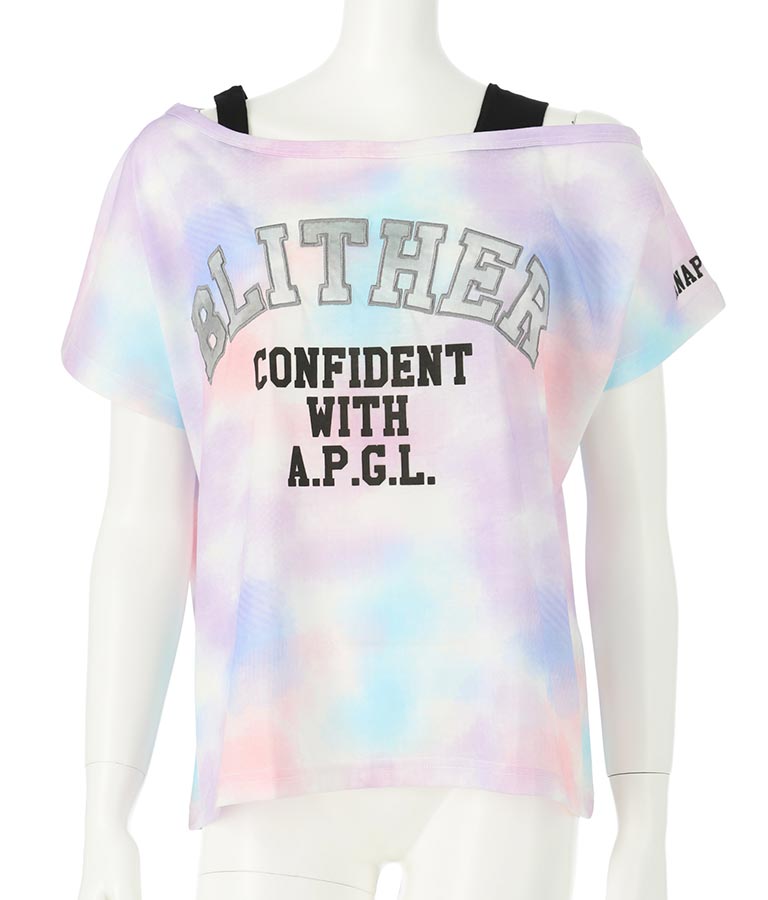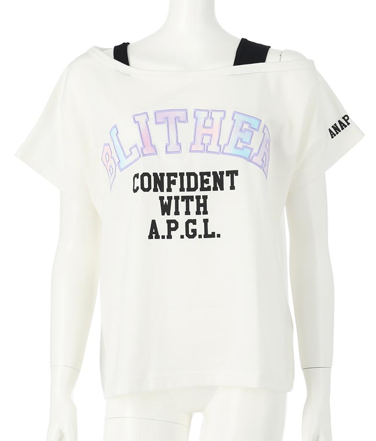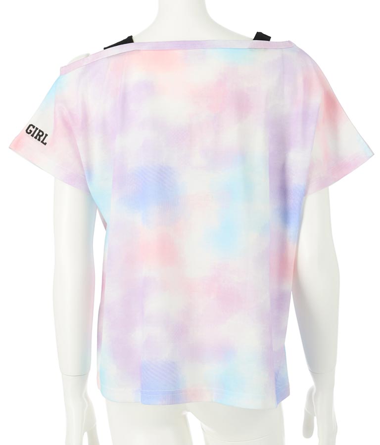 アシンメトリー 肩紐 ワッペン付 デザインTシャツ 913-7364