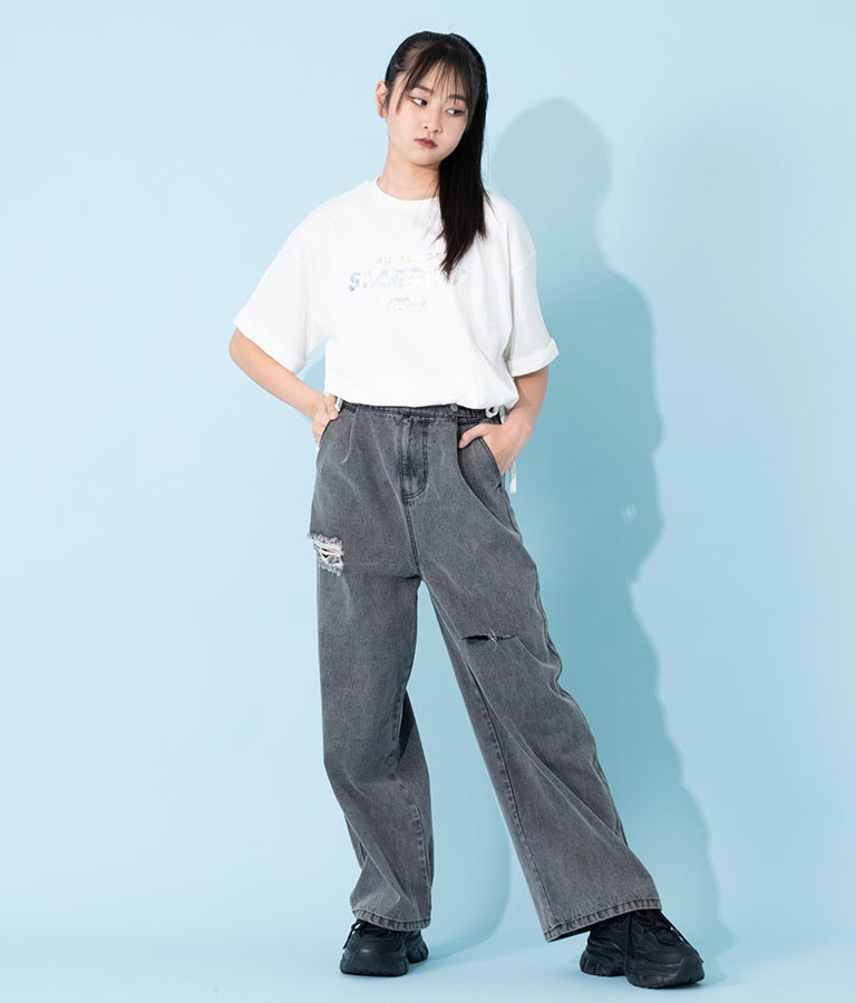 短めの丈なのでハイウエストのボトムと合わせたスタイリングがおススメです。