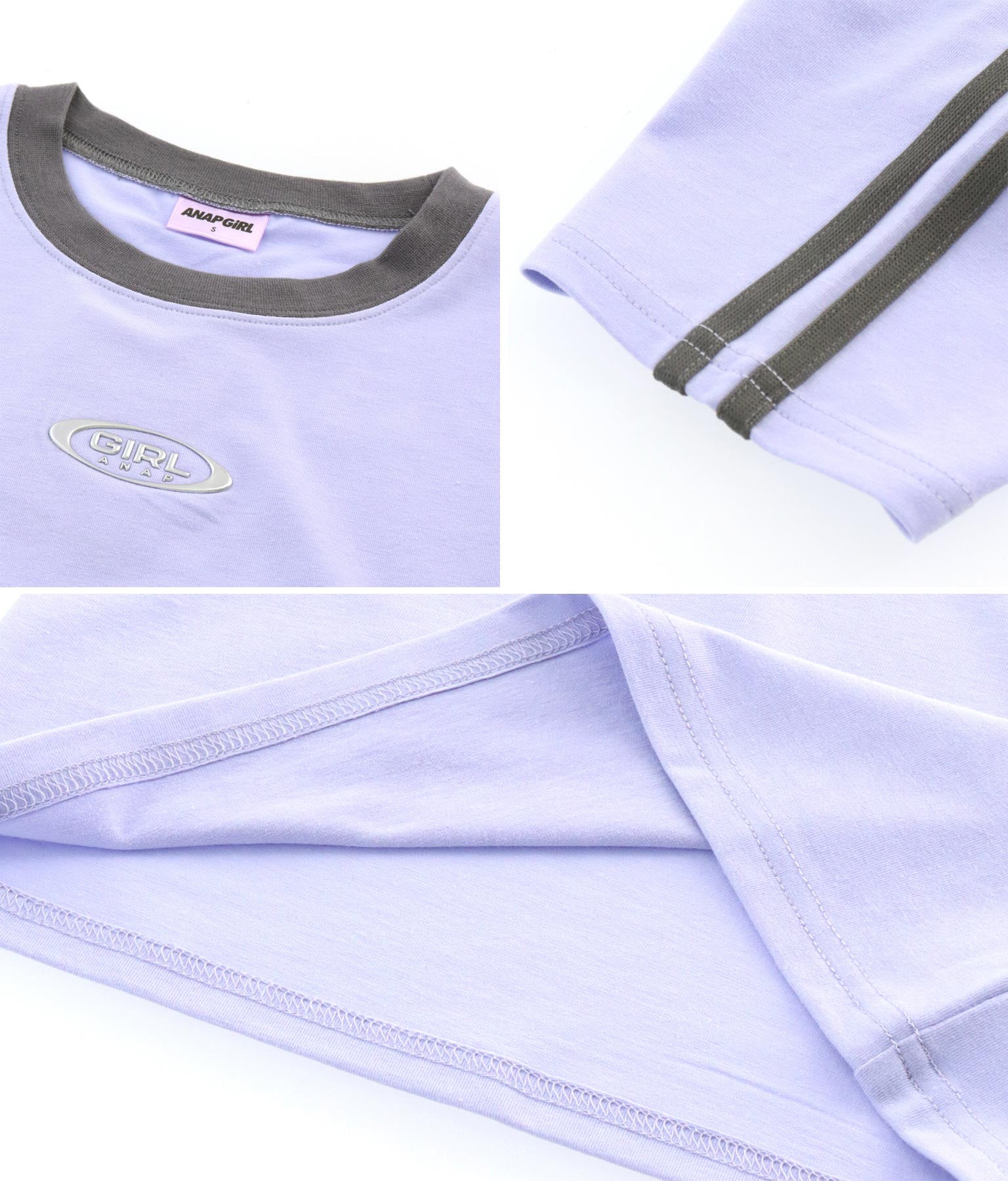袖 ライン 入り シルバー プリント ミニ Tシャツ 913-7453