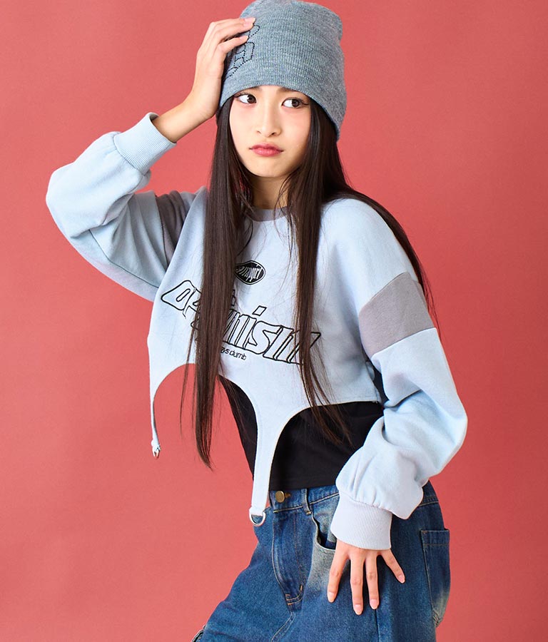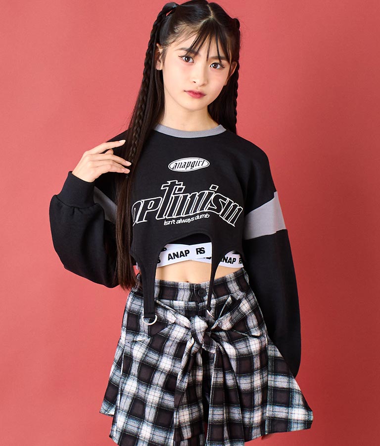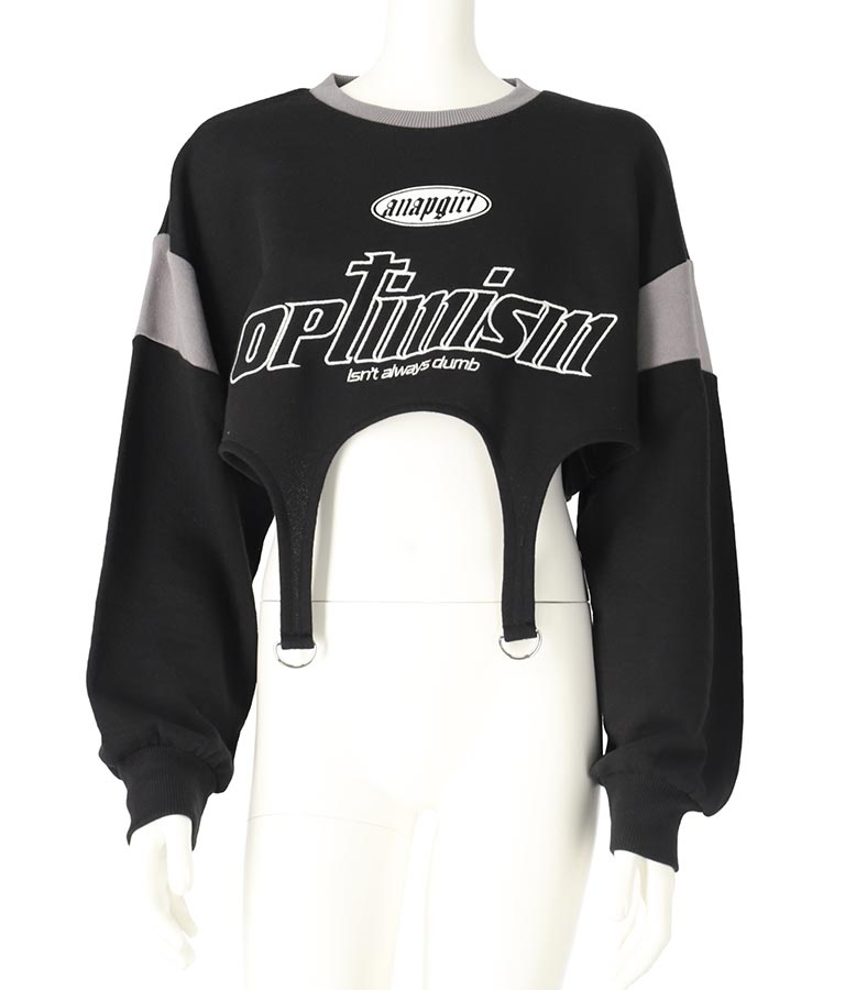 ガーターベルトをトレンドのショート丈トップスに落とし込んだ個性的な一枚☆