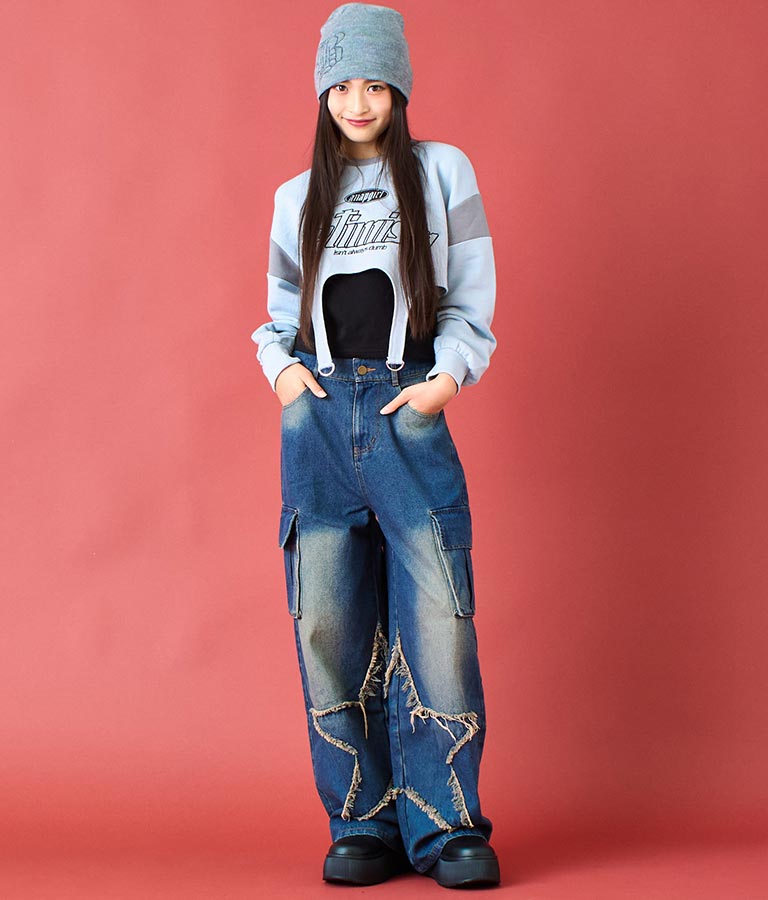 デニムパンツなどのワイド目なボトムスと合わせてゆるっと着こなすのがオススメ。