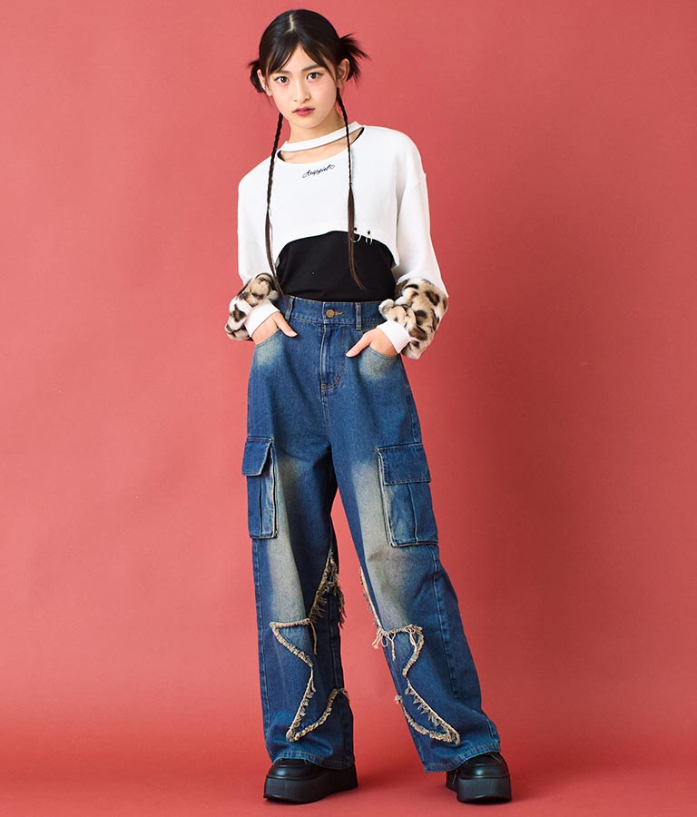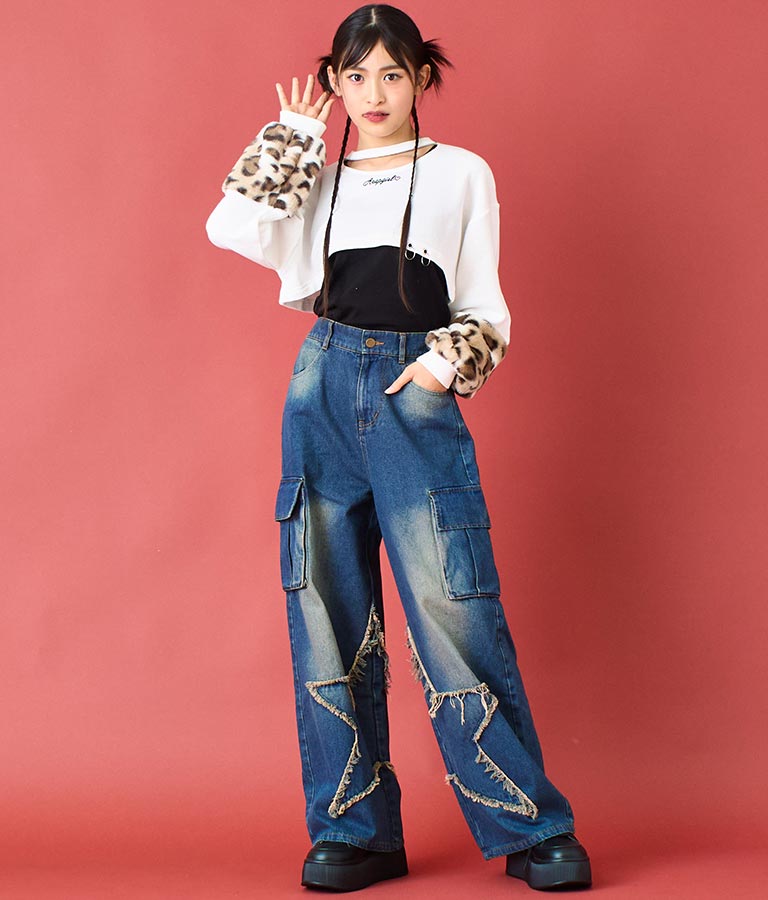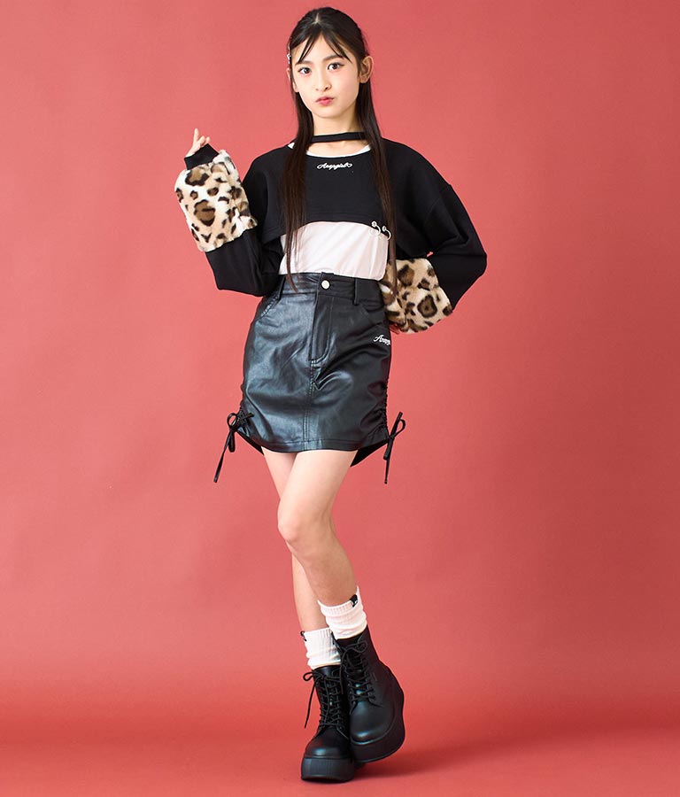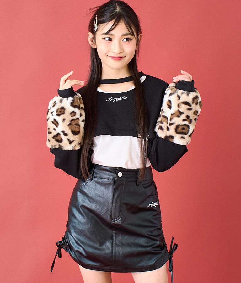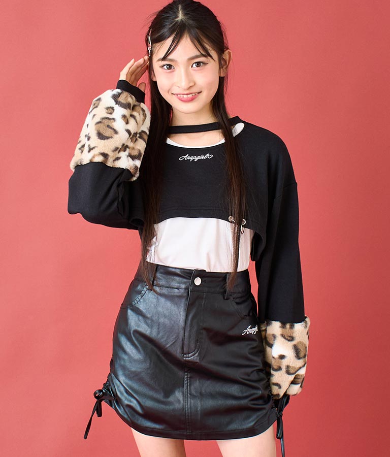 アームウォーマーのようなレオパード柄の袖や、チョーカー見えするネックデザイン、裾の二連リングなど、ディテールにこだわった一枚。